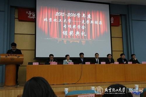 12月15日上午,北京化工大学2015-2016年度克劳斯玛菲专项奖学金颁奖典礼暨公司校园宣讲会在东校区图书馆三层学术报告厅隆重举行。出席本次颁奖典礼的来宾有克劳斯玛菲集团中国区CEO崔小军先生、中国区人力资源总监许敏女士、中国区反应发泡销售总经理张照将先生、中国区自动化项目经理杜海建先生等。出席本次活动的学校领导有北京化工大学校长助理宋来新老师、机电工程学院党委书记张冰老师、学生工作办公室副主任付国柱老师、材料学院分党委副书记李承明老师。会议由机电工程学院副院长王峰老师主持,奖学金获得者和部分学生代表参加了本次典礼。