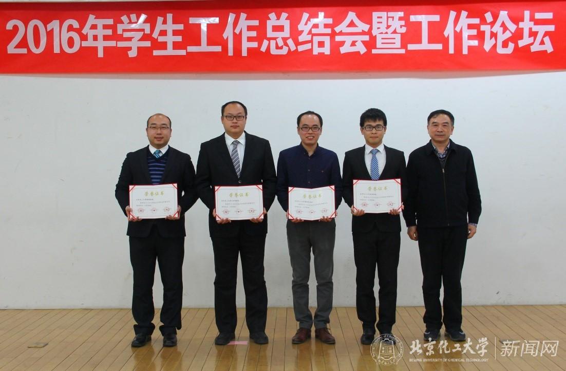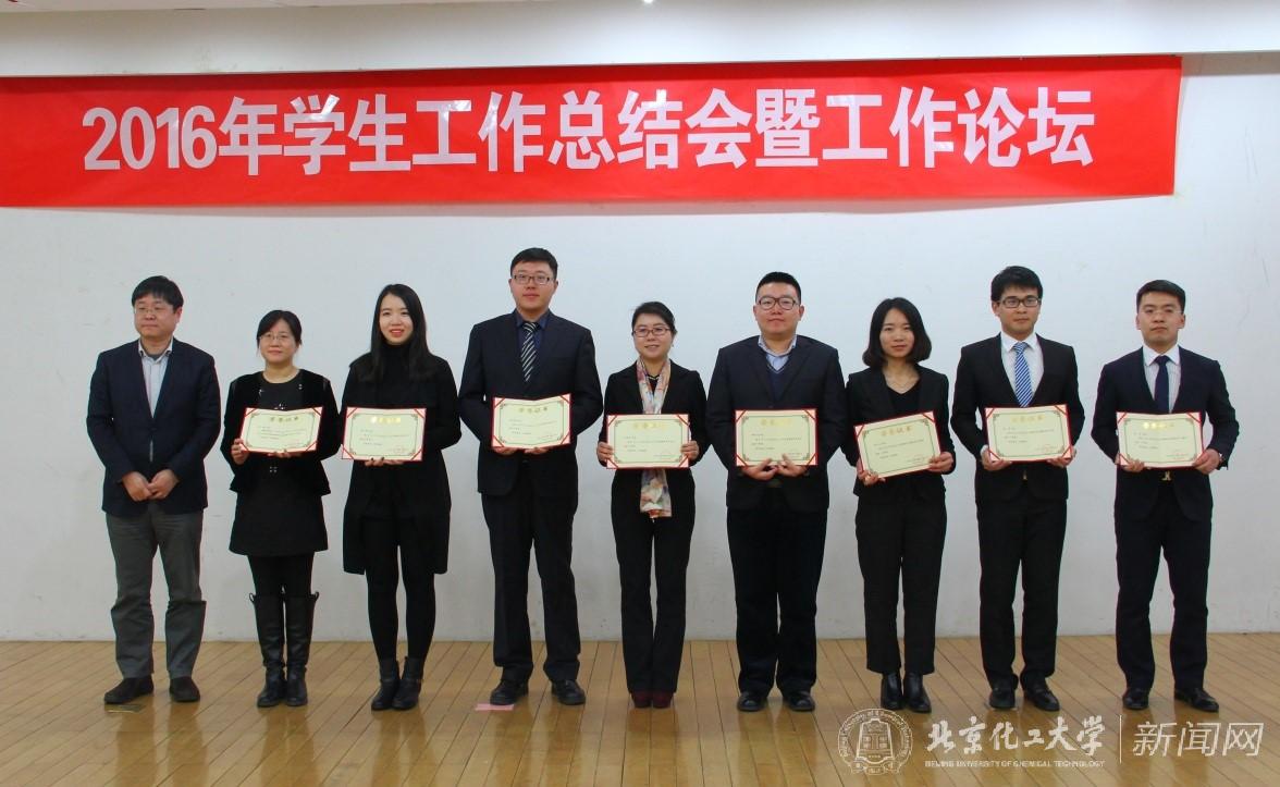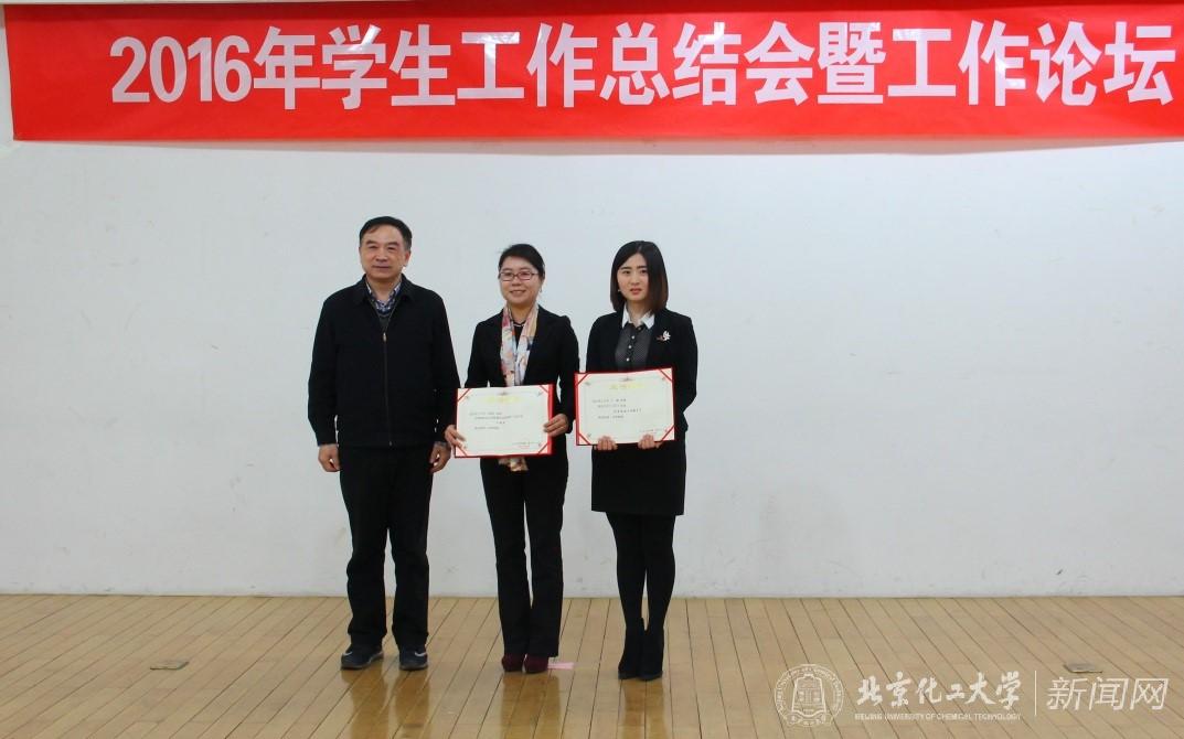 2016年,学生工作成果丰硕。与会领导为北京高校十佳辅导员及辅导员职业能力大赛获奖者、红色“1+1”、“院周”活动先进集体、示范性思想政治教育基地、院级学业发展辅导中心考核前三名、学生资助工作绩效考核前三名、主题班会大赛、发展辅导课教学评比、优秀网络思想政治教育作品和学工论坛征文获奖个人或集体进行了表彰。