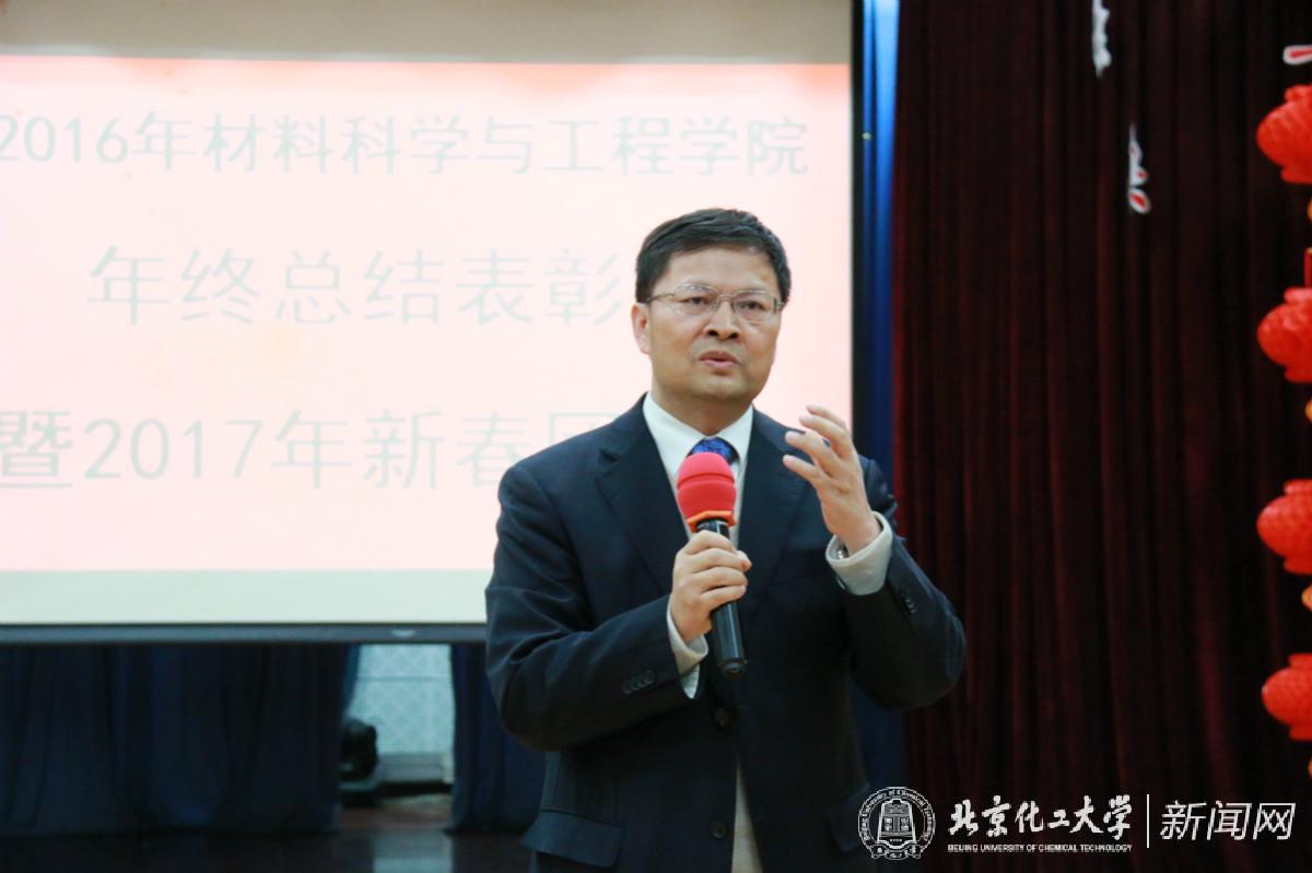 1月11日, 2016年材料科学与工程学院年终总结表彰会暨2017年新春团拜会在校工会教师活动中心召开。党委书记王芳、校长谭天伟、副校长王峰出席会议。材料学院全体领导、教职工参加会议。会议由材料学院党委书记赵静主持。