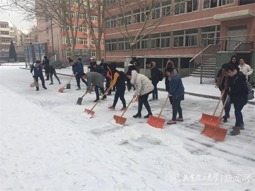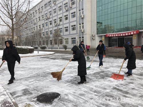 经过三个多小时的反复清扫,师生共同完成了校园扫雪除冰工作,确保校内主要道路、教学区、办公区等重点区域没有积雪结冰,校内路面状况、通行能力明显改善,切实保障了师生出行安全,保障了学校各项教学科研工作的正常开展。