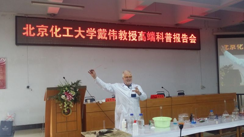 David教授3次赴河南为高考生源大省开展化学科普讲座,此次是在5天内跨越5个县市赴7所中学,每次报告都为中学生现场做2个小时的十个精彩实验,实验前David教授精心准备实验器材,认真配置实验溶液,展现了David教授对科学普及工作的热爱和敬业精神,也使聆听了报告的中学生感受到了科学的神奇和化学世界的奥妙,成为科技追星族。