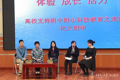 化大对附中的支持真心实在,附中发展积极主动,取得了许多成果,借这次现场会得以展示,与会者观看了附中摄制的宣传片,对附中现在的整体状况有了初步的了解,再进入课堂中听课,感受化大教授和附中教师共同设计上课方案,共同指导学生的学习的深度与广度,这种独特的上课方式引起听课教师极大的兴趣,化大附中展示了10节科技课,涉及化学、物理、生物、通用技术、steam课程,给大家留下了很深的印象。