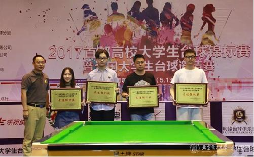 5月14日,2017首都高校大学生台球锦标赛暨全国大学生台球邀请赛在中国传媒大学体育馆落下帷幕。本次大赛是北京市大学生体育协会台球分会举办的第四届全国邀请赛,有以往的成功经验做基础,本届赛事在规模、组织筹备水平以及社会各界的支持力度上都达到了历史最高水平。包括北京大学、清华大学、同济大学、浙江大学等国内50余所高校、超过300名大学生选手参加了比赛。