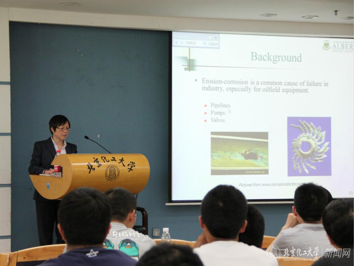 5月9日下午,骆静利教授给学生们做了一场题为“Anodic dissolution kinetics of passive systems in flowing slurries”的精彩报告。骆静利教授结合多年对油田管道冲刷腐蚀机理与防护方面的系统研究,介绍了几种典型材料在不同腐蚀介质中的磨损腐蚀行为、液体动力效应,以及可进行预测的理论模型。