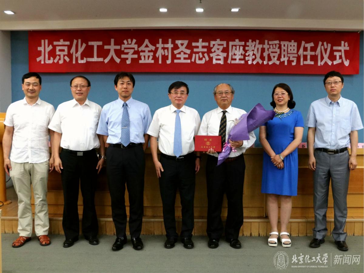 张立群院长介绍了金村圣志教授的履历和研究成果,王峰副校长为金村圣志教授颁发了北京化工大学客座教授聘书,学生代表为金村圣志教授佩戴校徽并献上鲜花。随后,王峰副校长代表学校对金村圣志教授聘任为我校客座教授表示热烈欢迎,并表示金村圣志教授的到来定能促进我校的学科发展、科学研究和人才培养,为我校“双一流”建设贡献力量。最后,金村圣志教授表示,能够受聘成为我校客座教授非常荣幸,并表示一定会加强与北京化工大学之间的交流与合作,为北京化工大学的进一步发展提供一份力量。