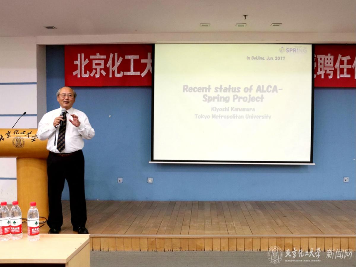 聘任仪式结束之后,金村圣志教授作了题为“Recent Status of ALCA-Spring Project”的学术报告,他从电动汽车的发展现状入手,向我们详细讲解了目前锂离子电池在应用上的优缺点,并对下一代高能量密度的新型电池材料作了展望。报告内容深入浅出,与会师生均受益匪浅。最后,陪同金村圣志教授来我校的栋方裕一助理教授,为与会师生介绍了金村圣志教授研究室的概况及研究方向,并欢迎与会师生到日本东京都立大学进行学习和交流。