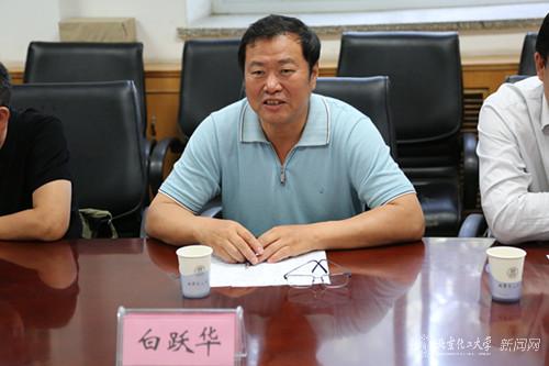 王峰副校长对白跃华一行表示热烈欢迎,并介绍了我校总体情况及科研工作特色。他说,我校和通辽市的合作源于我校定点扶贫科左中旗,希望在定点帮扶科左中旗的基础上,加大和通辽市的合作,将定点扶贫辐射到整个通辽市,可以从以下三个方面开展合作,一是通过人才培训,专题培训等为通辽市的人才培养作出贡献;二是结合当地资源与我校的科技特色,以一定形式的交流与合作凝练一批科技项目;三是组织专家进行技术支持。