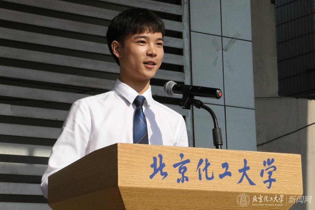 化学工程学院本科毕业生潘超同学代表2017届毕业生发言,他回忆了学校为他带来的丰富的文化积淀、充实的求知体验和系统的专业眼光。他感谢学校为广大学子打造了理论实践、探索真知的育人平台,培养大家专注、严谨的学习态度和科学、创新的研究思维。他代表全体毕业生表态“今天我们以母校为荣,明天北化以我们为荣”。