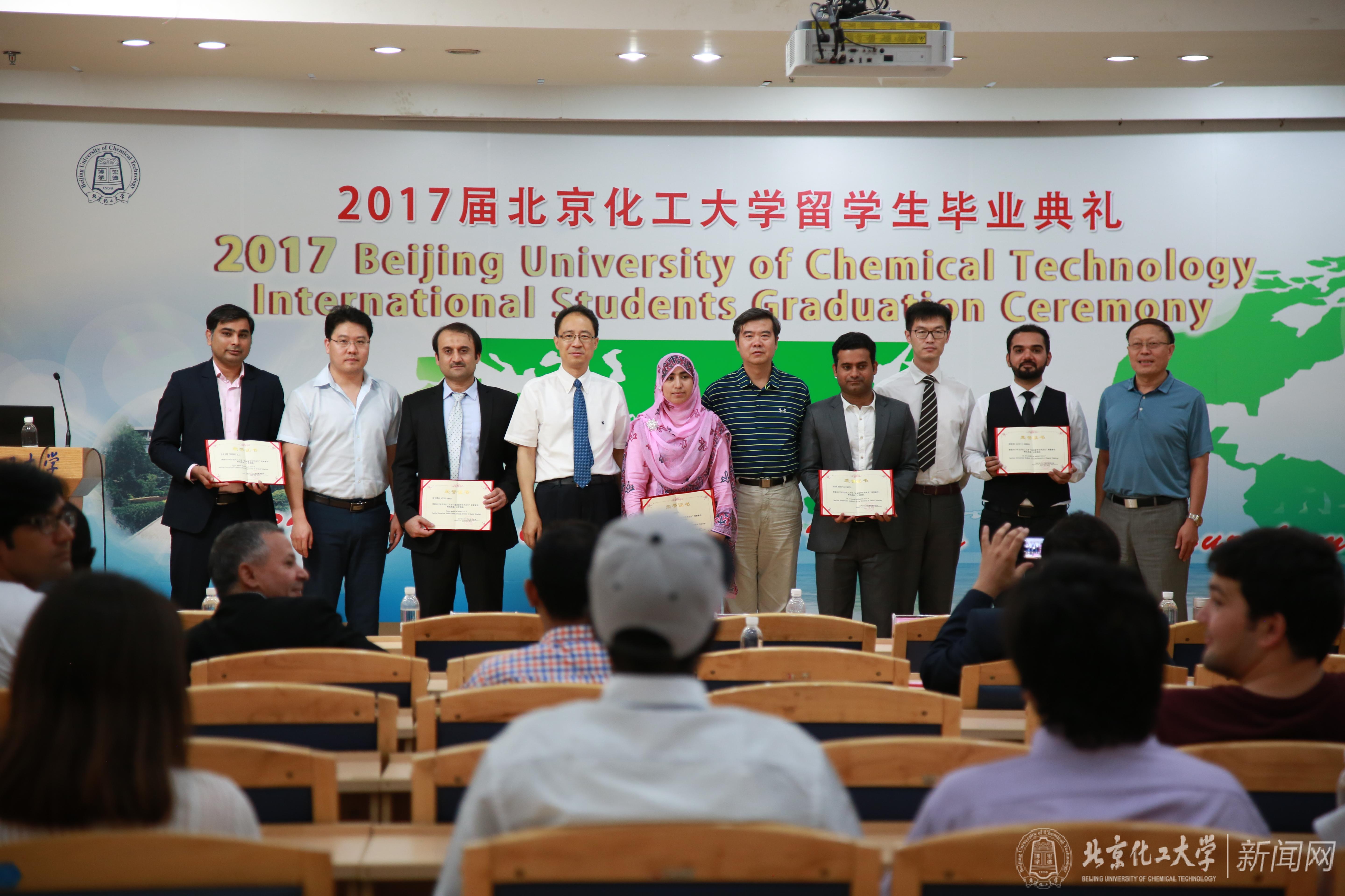 7月3日下午,北京化工大学2017届外国留学生毕业典礼在会议中心举行。副校长陈建峰出席。国际处副处长王永生、国际教育学院院长刘广青、化学工程学院常务副院长陈晓春、材料科学与工程学院副院长于中振、经济管理学院副院长吴军、理学院副院长宋宇飞、生命科学与技术学院副院长罗施中及国际教育学院留学生办公室全体教工参加了毕业典礼仪式。2017届毕业留学生和部分远道而来的毕业生家长、亲朋好友及在校留学生参加了毕业典礼。典礼仪式由刘广青院长主持。