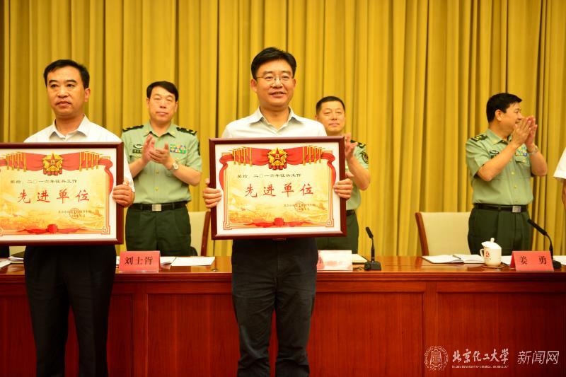 我校获得北京市“二〇一六年征兵工作先进单位”荣誉称号,并作为高校代表上台接受表彰,这也是我校连续第六年获得该项殊荣。卫戍区副司令员张宏少将为我校颁发荣誉奖牌。