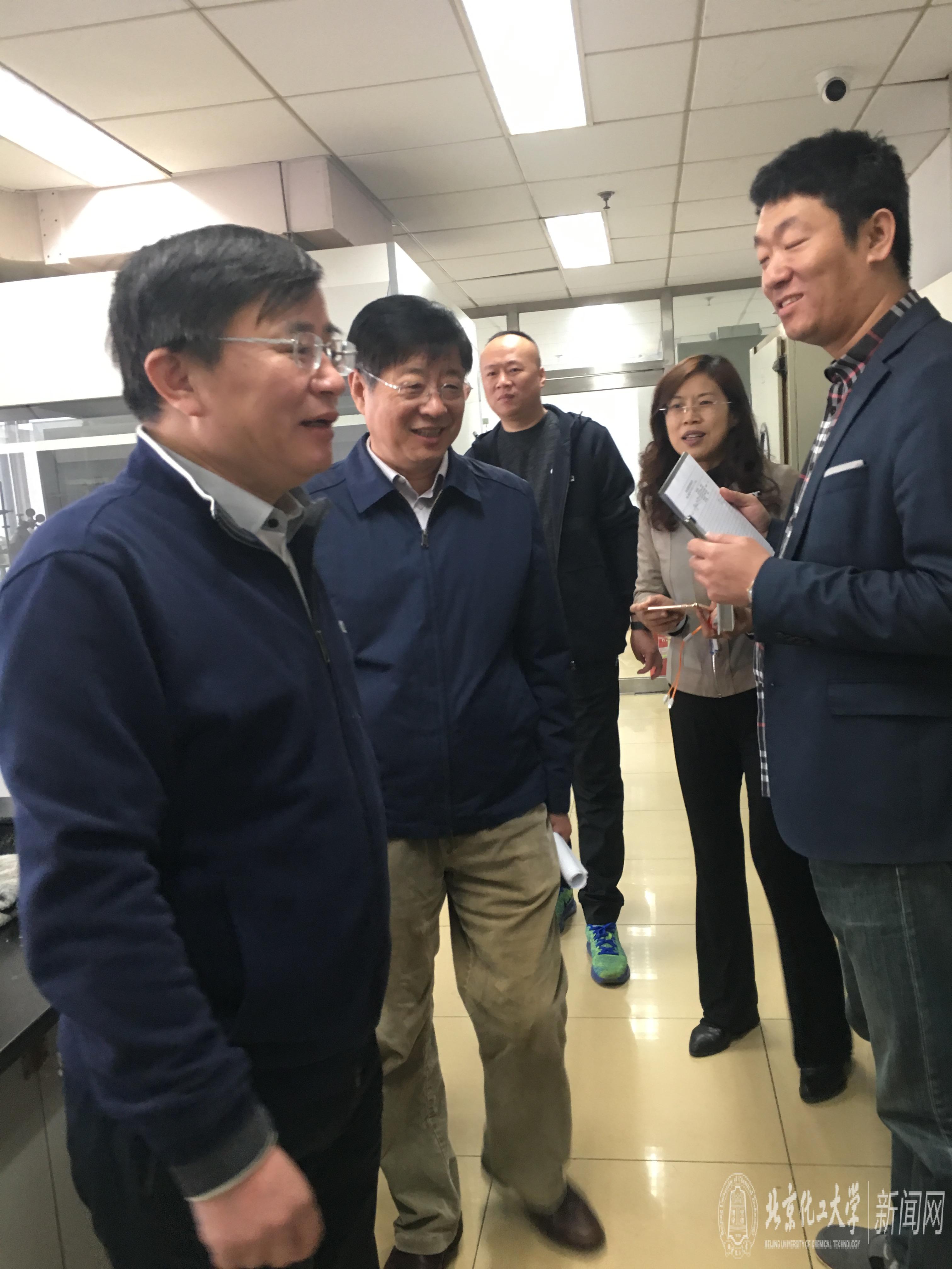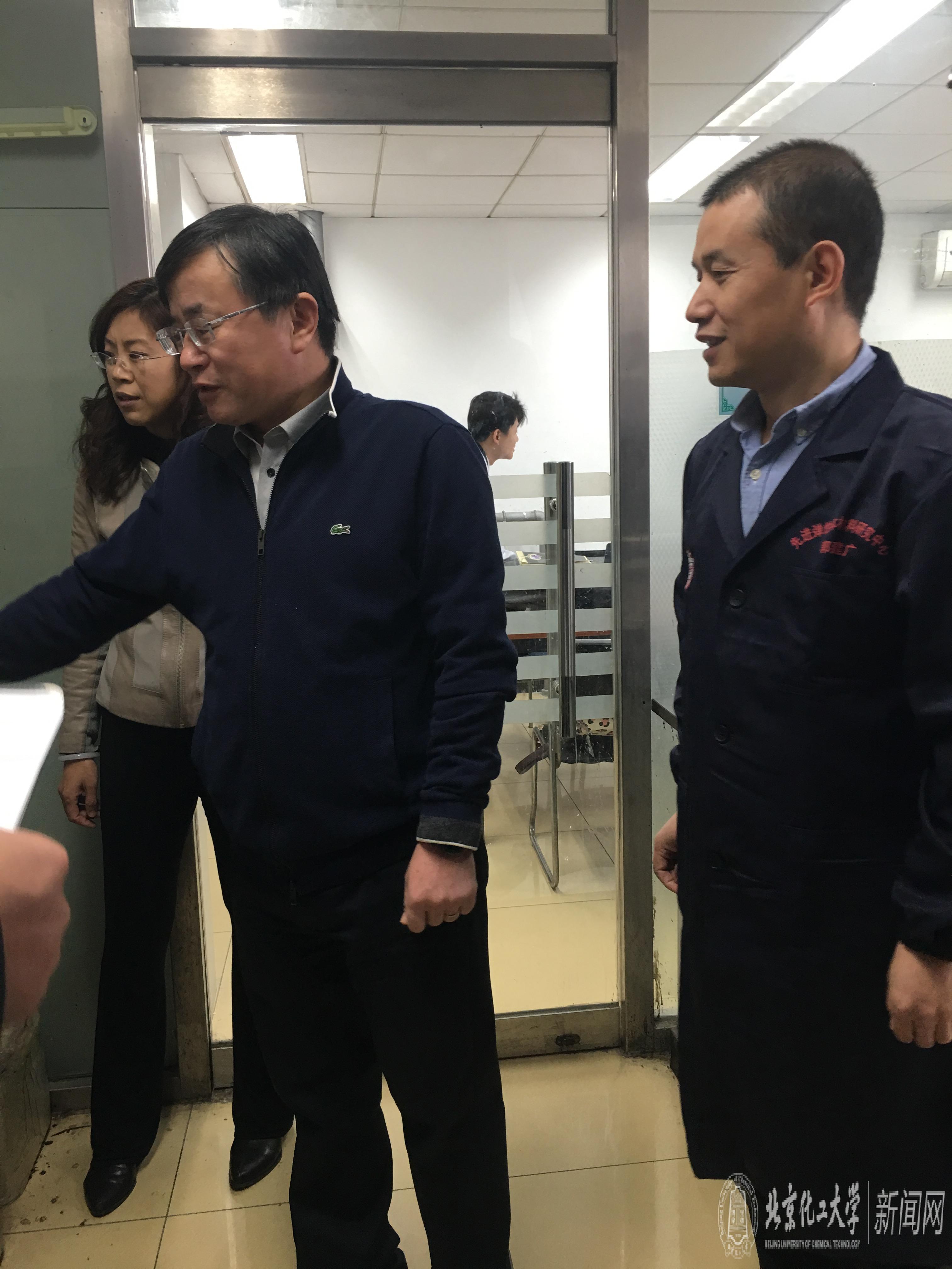 王峰副校长、姚望副处长、高惠玲副处、张晓丰常务副处长与相关老师一起,对材料学院在科技大厦、化纤楼和无机楼的实验室安全进行了全面检查,主要包括实验室卫生、 个人防护、 危险化学品分类存放、 使用记录以及钢瓶固定等方面进行检查。