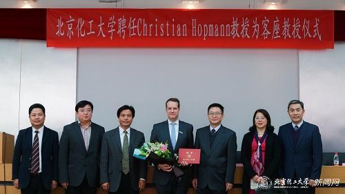 10月23日上午,北京化工大学聘任德国亚琛工业大学塑料加工研究所(IKV)主席Christian Hopmann为客座教授仪式在科学会堂二楼会议室举行。副校长李新军出席。国际交流与合作处处长毛立新、人事处副处长赵春,机电学院党委书记张冰、院长杨卫民,以及部分师生参加聘任仪式。