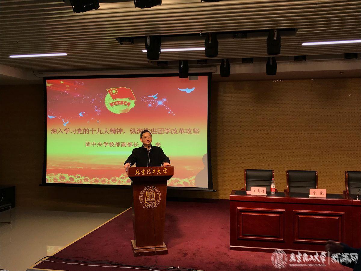仪式结束后,团中央学校部副部长宋来为全体学员作以“深入学习党的十九大精神,纵深推进团学改革攻坚”为主题的首场报告。他结合自身学习体会,深入浅出的为在场学生解读了十九大报告。他指出,十九大报告是一份闪耀着马克思主义真理光辉的纲领性文献,是我们党站在新时代起点上的政治宣言,描绘了中国未来三十年的发展蓝图。我们各级团学干部要准确把握其丰富内容和精神要义,要全面的有重点的长期的学习十九大精神和习近平新时代中国特色社会主义思想。切实把学习、宣传十九大精神作为今后一段时间的重点工作和任务,原原本本地学习,有重点地学习,联系实际地学习。他结合新时代下团学工作的特点为学员讲解了团学工作的改革方向、重点和要求,并勉励广大团学干部要做青年成长道路上的领路人。
