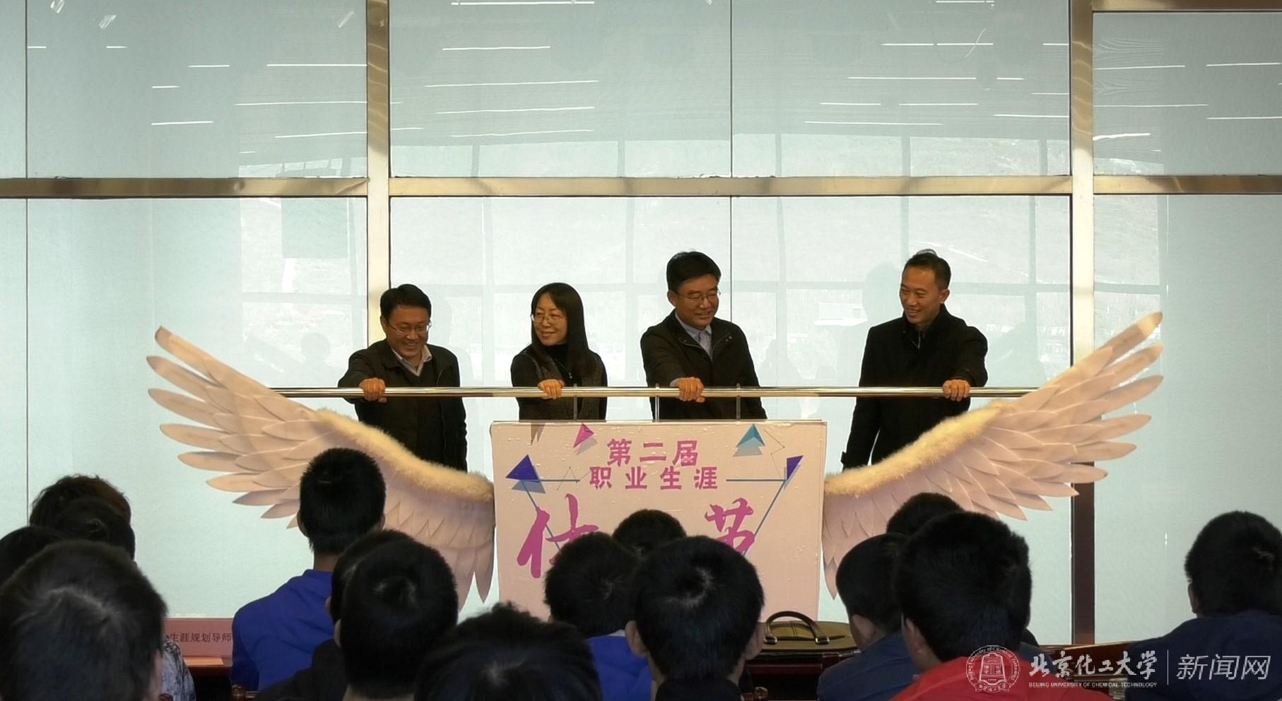 随后,校党委副书记宋来新、学工办副主任付国柱、教务处副处长郑秀英及北区办副主任许利民共同推动“梦想的翅膀”,为本届“职业生涯体验节”正式拉开序幕。