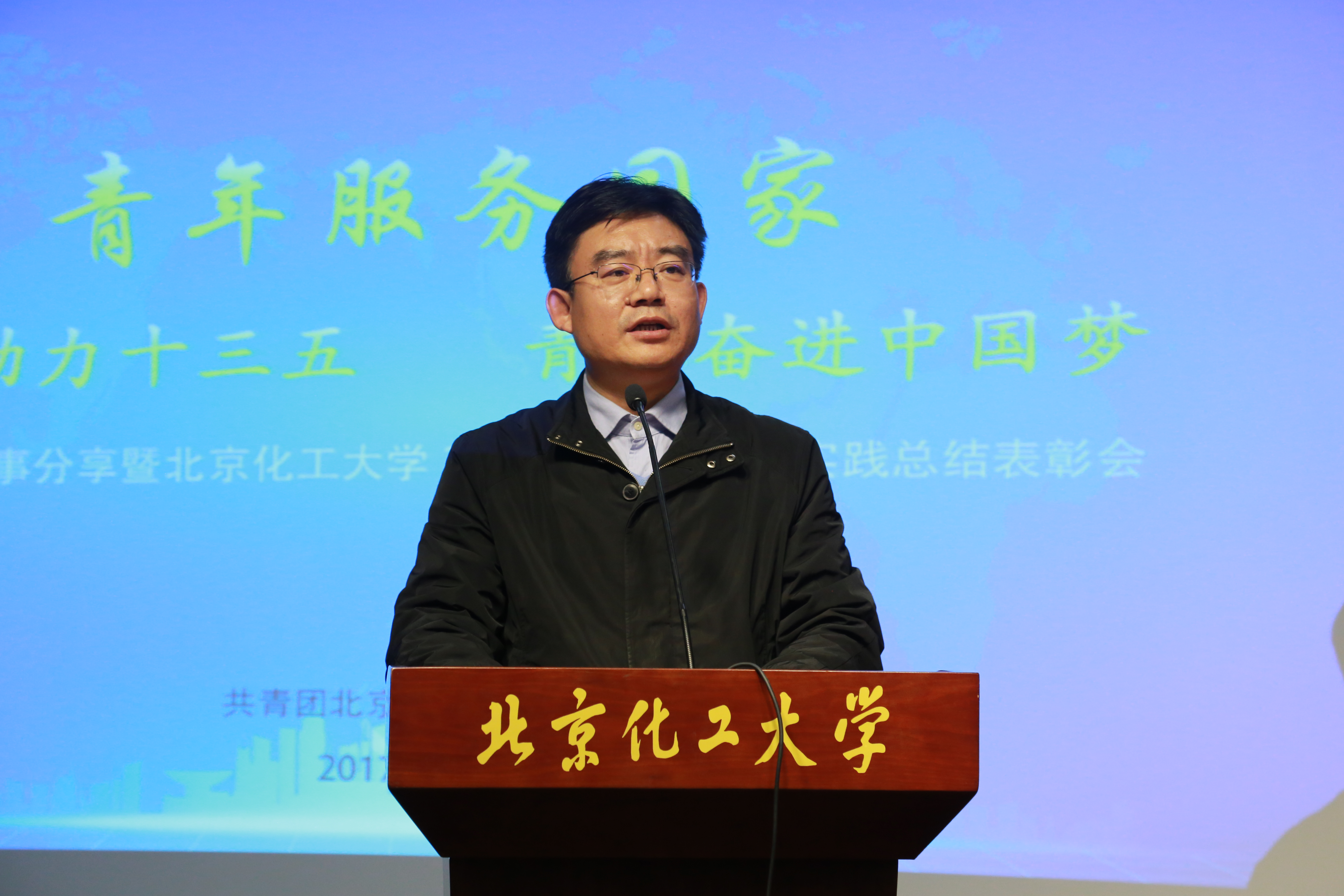 10月31日下午,北京化工大学青春实践故事分享暨2017年暑期社会实践总结表彰会在昌平校区多功能厅举行。校党委副书记宋来新出席。国际教育学院直属党支部书记刘振娟、教务处副处长张凤元、北校区工作办公室副主任许利民、学生工作办公室副主任付国柱、校团委书记丁贞栋、各学院学生工作负责人、团委书记、社会实践获奖代表及学生代表参加表彰会。