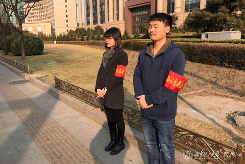 学生党员在长安街协助街道工作