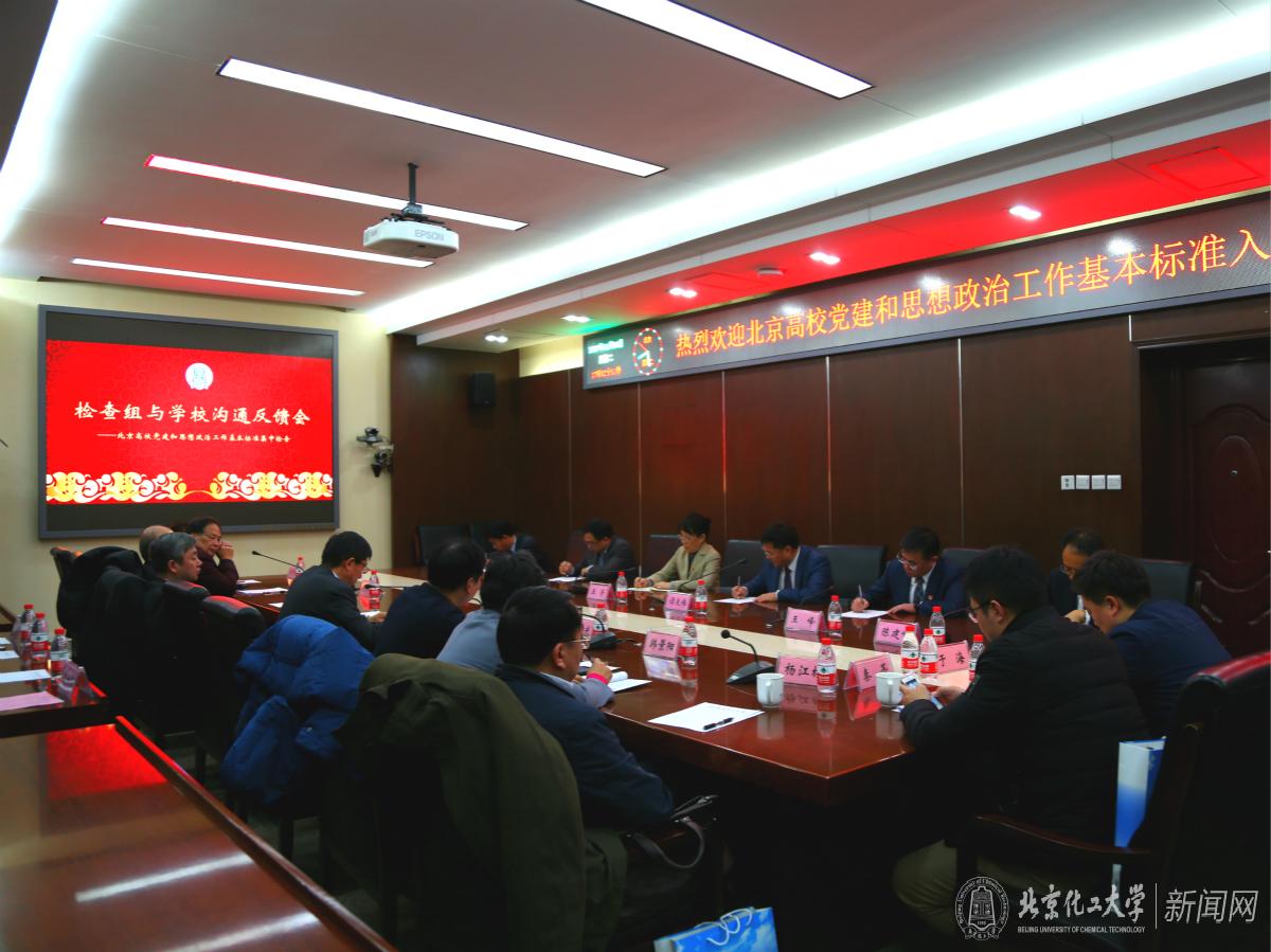 北京市教育工会主席张锦主持反馈会。在反馈会上,北京市教委人事处处长杨江林、北京联合大学党委副书记付晨光、北京石油化工学院原党委副书记刘仲仁分别代表整体组、党建组、宣教组反馈了检查情况。市教育工会主席张锦代表检查组就整体检查情况进行了口头沟通,对我校党建和思想政治工作取得的成绩给予了充分肯定,并对今后工作提出了建议。