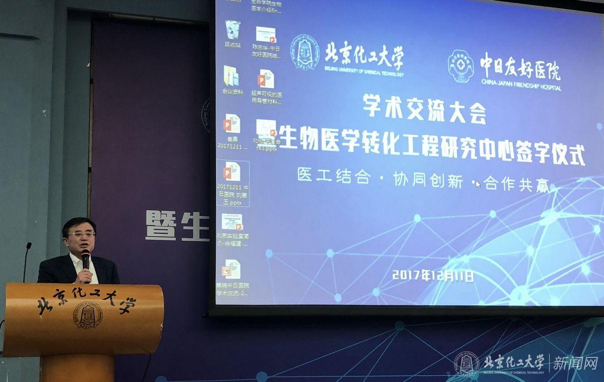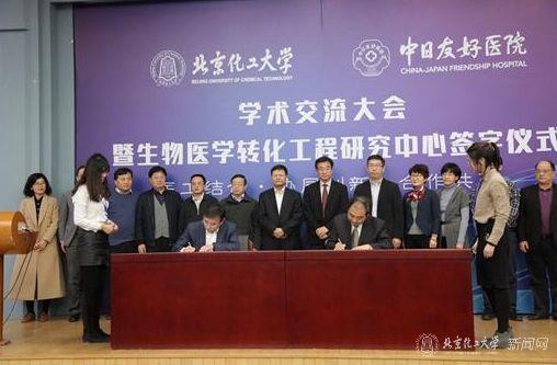 12月11日下午,北京化工大学-中日友好医院生物医学转化工程研究中心签字仪式暨首届学术交流大会在我校学术报告厅举行。中日友好医院院长王辰院士、副院长姚树坤教授,我校校长谭天伟院士、副校长王峰教授,杨万泰院士等领导和嘉宾出席会议,来自中日友好医院的100余名医生和研究生代表及我校200余名师生代表参加会议。