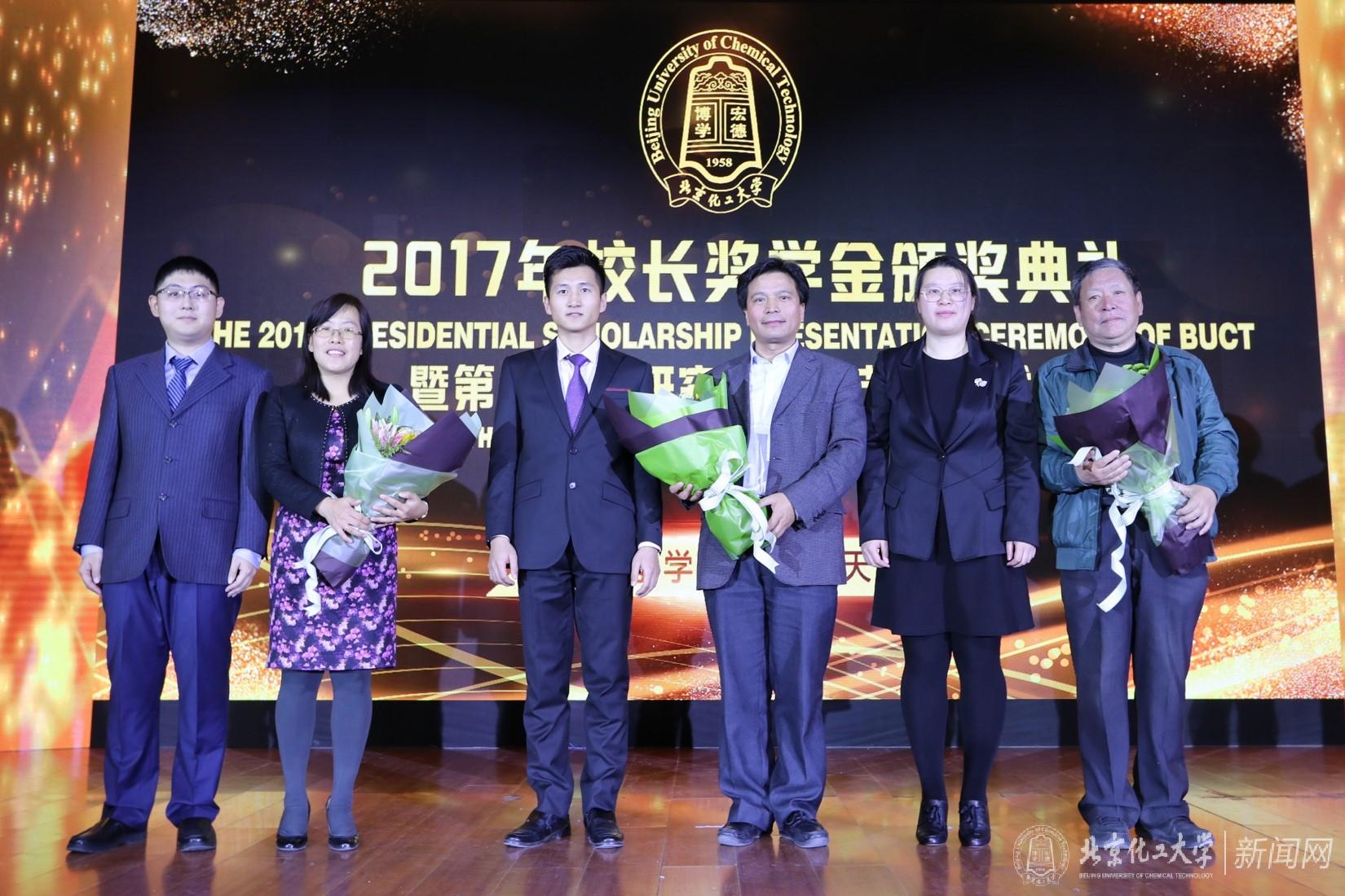 获奖者代表郑骏驰、鉴冉冉、石美浓与现场同学分享了他们在科研道路上的困难和突破,他们的成长事迹和勤奋付出深深感染了在场的每一位同学。颁奖仪式上,获奖同学代表还向指导老师献花,表达了对恩师谆谆教诲的感激之情。谭天伟校长为 2017年校长奖学金获得者颁发获奖证书。