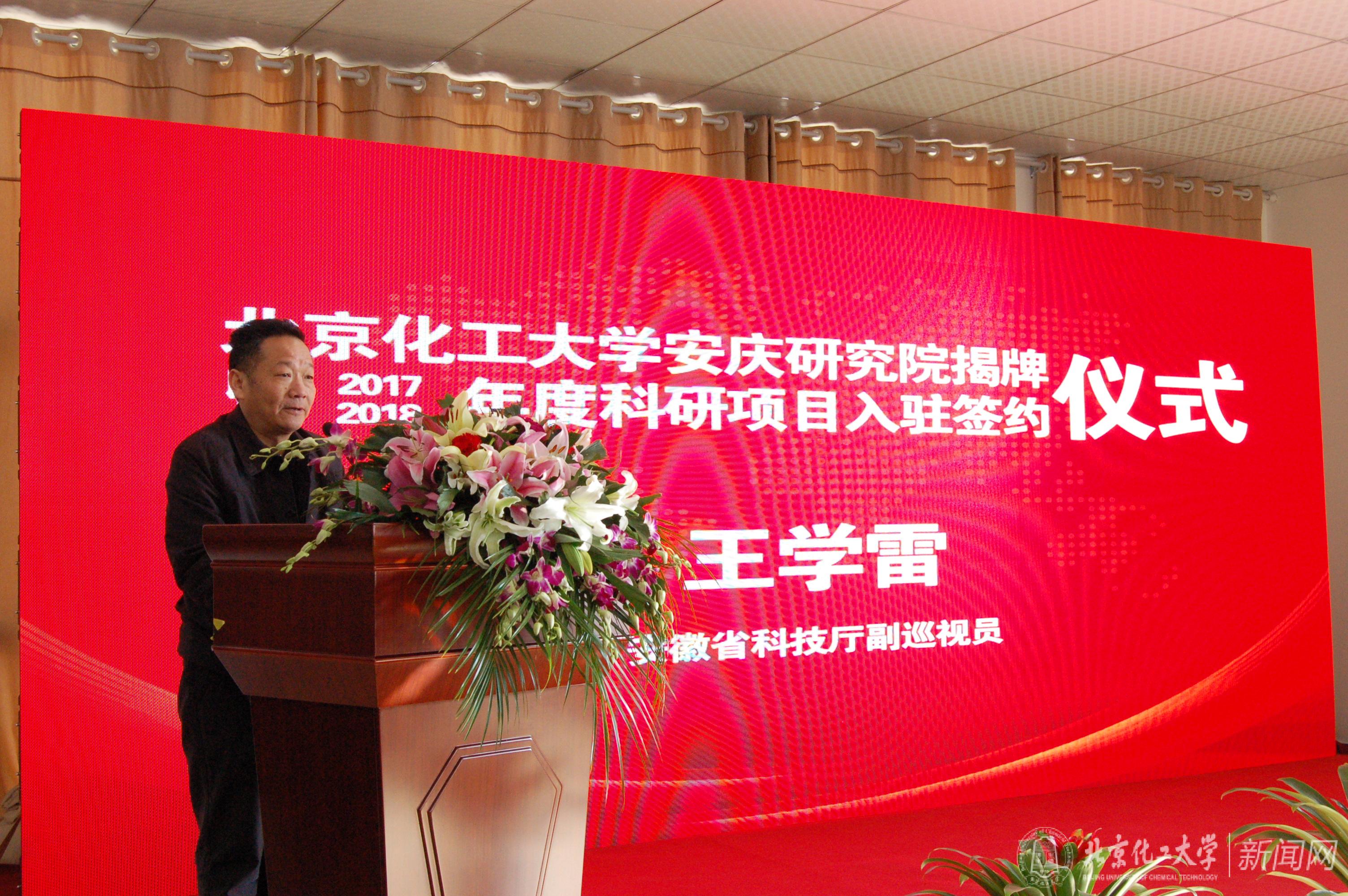 安徽省科技厅副巡视员王学雷在代表省科技厅发表讲话中指出,安徽省委、省政府历来高度重视产业创新和高新技术企业的发展。今年四月,安徽省人民政府印发《支持科技创新若干政策》,大力支持开展重大关键技术攻关、科技人才团队创新创业和促进科技成果转化产业化等十个方面工作,实质性推动科教大省和创新型省份建设。他强调北京化工大学安庆研究院必将为安庆高新区的创新发展插上腾飞的翅膀,希望北京化工大学和安庆市政府能够运用好安庆研究院创新平台,认真贯彻落实党的十九大“创新是引领发展的第一动力”精神,依托双方的科研优势和产业优势,积极推动科技研发和成果转化工作,多出成果,出优秀成果,出大成果,希望省市两级科技系统相关部门积极主动做好服务工作。