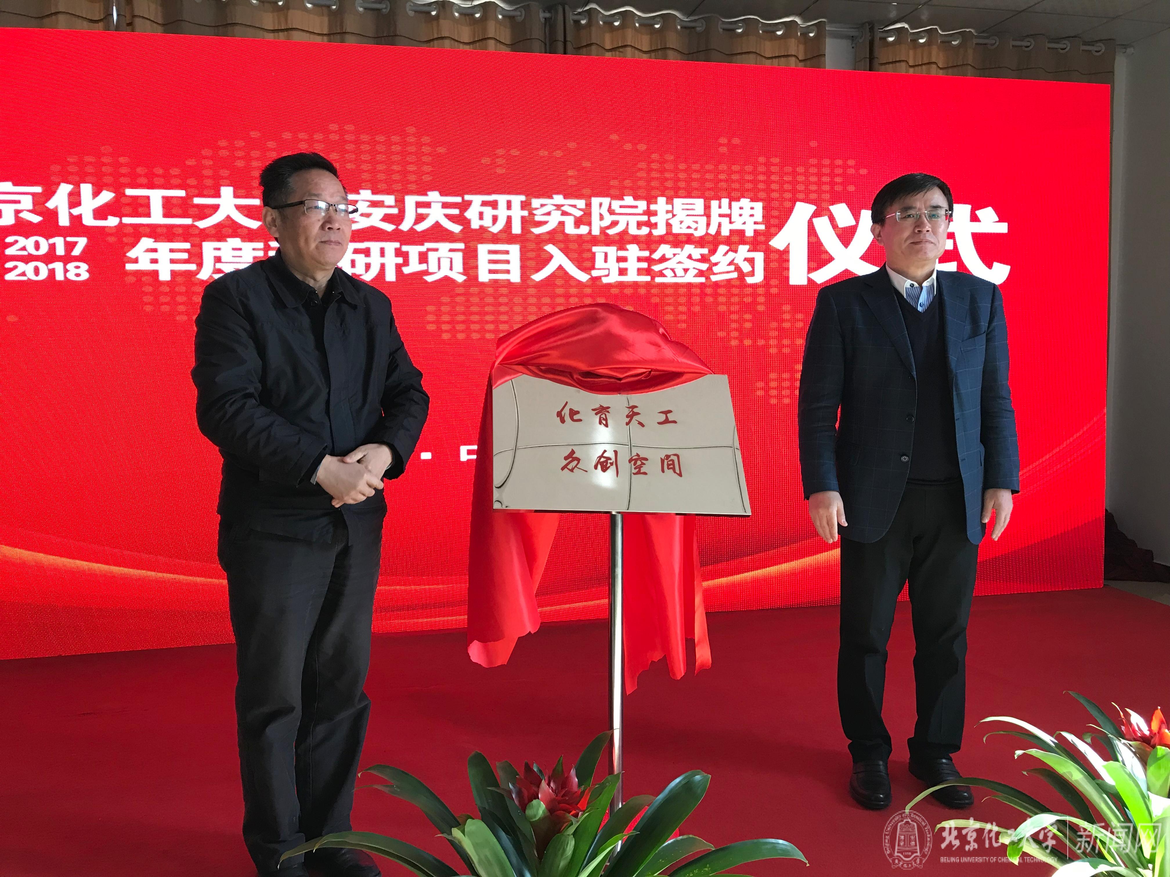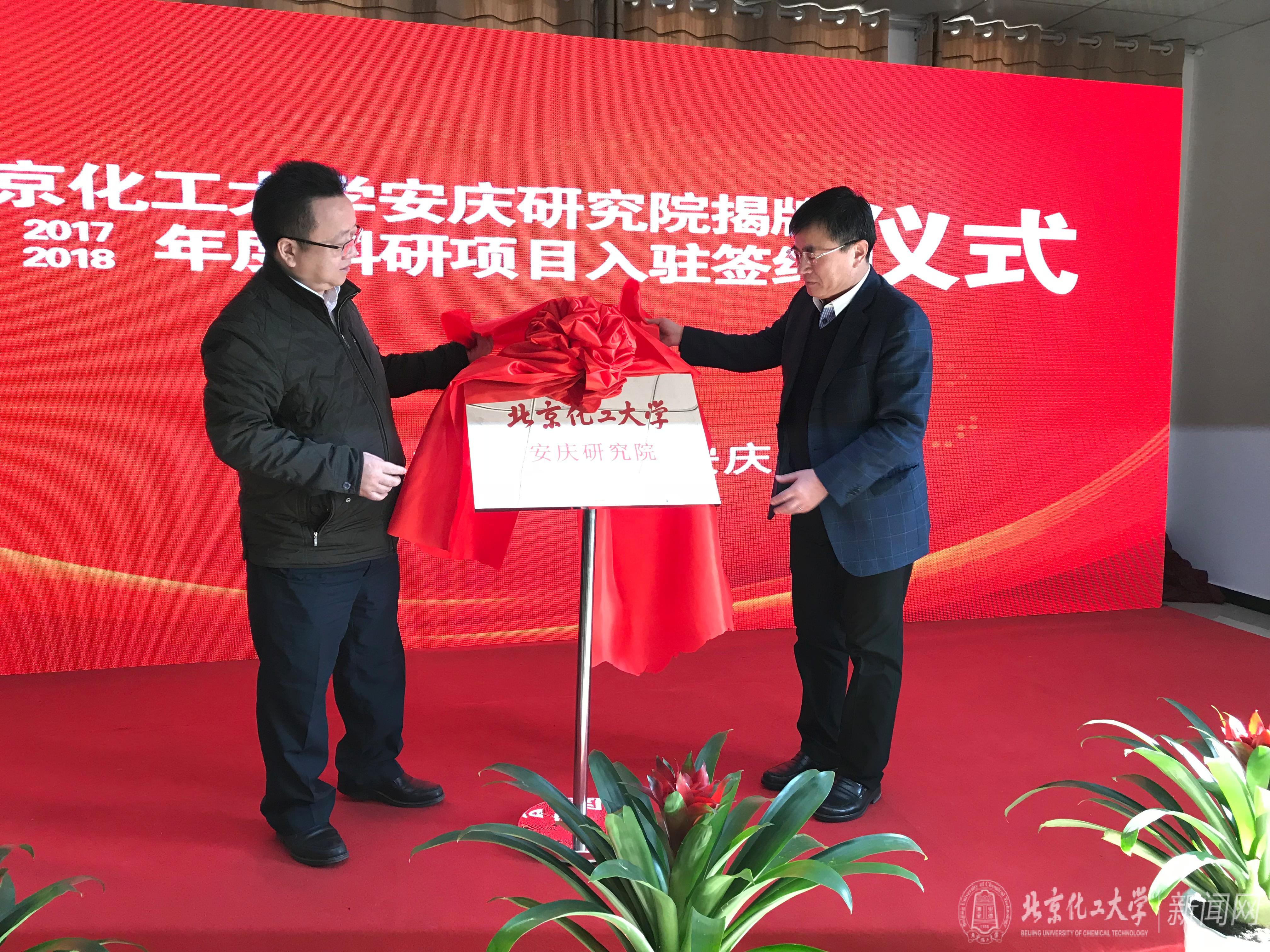 12月22日上午,北京化工大学安庆研究院揭牌暨2017、2018年度项目入驻(资助)签约仪式,在安庆市高新区北京化工大学安庆研究院举办,学校与安庆市各级领导、特邀代表130余人参加仪式。