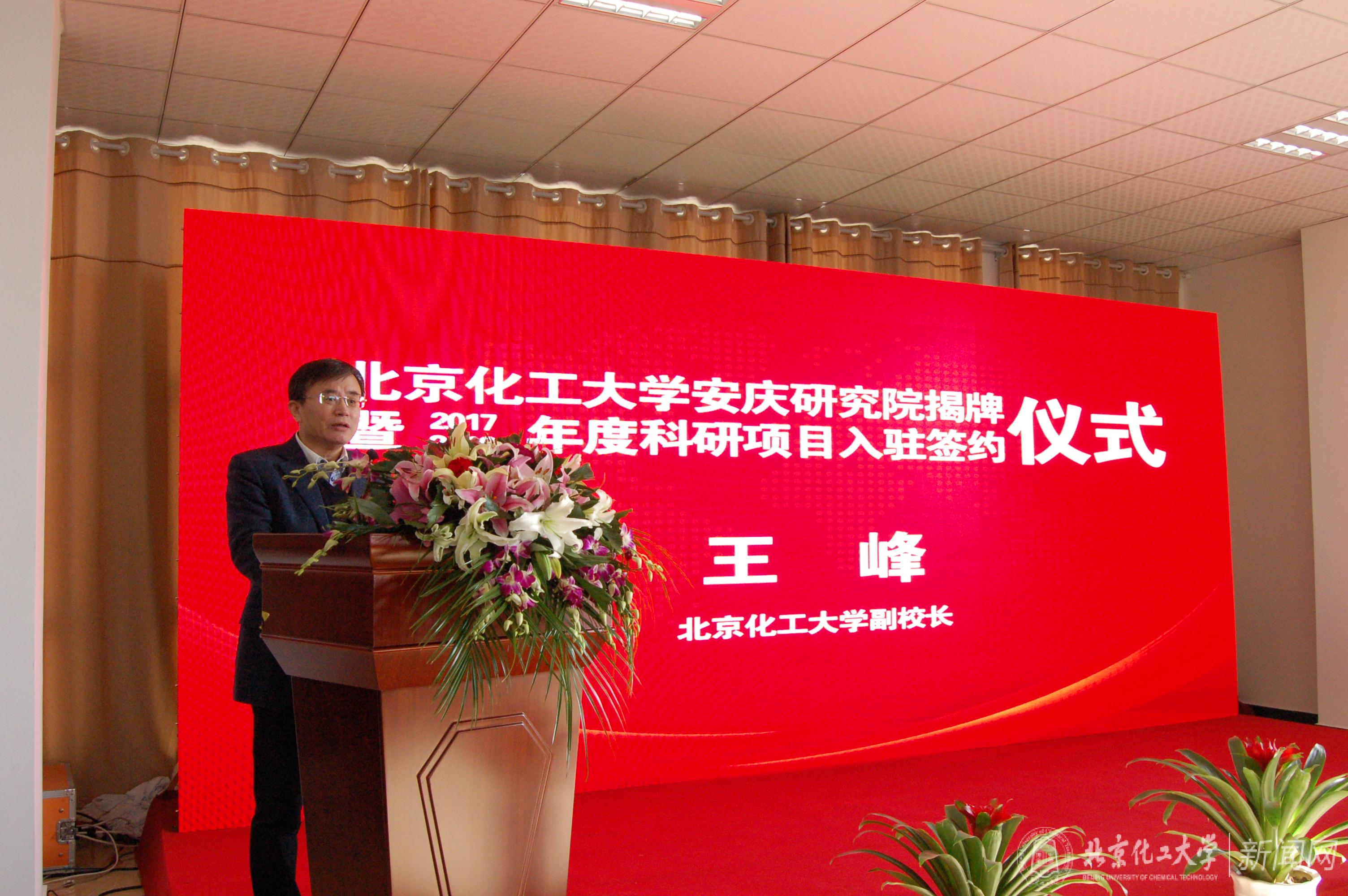 北京化工大学王峰副校长代表学校致欢迎辞,欢迎各级领导、嘉宾参加仪式,祝贺研究院揭牌正式投入运营,并与10个项目团队、2家企业成功签约。王峰副校长指出,在安庆市政府、安庆市高新区管委会的大力支持下,北京化工大学安庆研究院在筹备和初期建设阶段,取得了实质的阶段性成效,是北京化工大学、安庆市人民政府自签署科技创新、创业服务体系合作共建协议以来,深入学习领会党的十九大精神并贯彻落实在实际行动上的具体体现。希望通过北京化工大学安庆研究院的示范,能更进一步推动安庆市与北京地区乃至全国高校及科研院所的产学研合作,为安庆市引进主导产业与战略性新兴产业创新项目,培养高端创新人才团队,拓展相关产学研合作领域打下良好基础,为构建具有安庆特色的区域创新体系添砖加瓦。