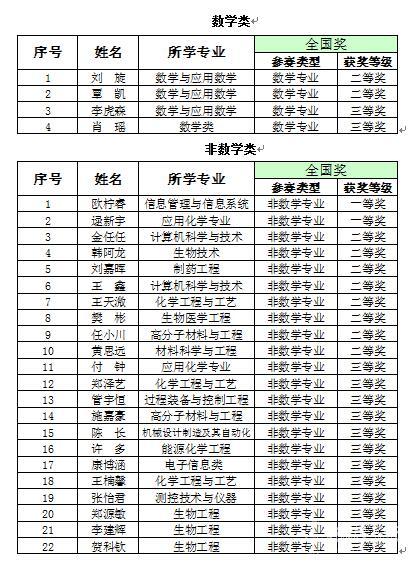 本次竞赛我校从5月初开始启动,进行赛事宣传和组织报名,共有700余名同学踊跃参与,并于5月26日、8月30日分别进行了两轮校内选拔赛,经过认真的评阅试卷和综合评定,选拔出61名优秀学生参赛,其中数学类19名,非数学类41名。本届数学竞赛我校取得的骄人成绩,离不开学校教务处和理学院领导的关怀和大力支持,也离不开认真进行教学和辅导的教师们的辛勤工作,同时也充分展现了我校数学教学整体的水平和实力。