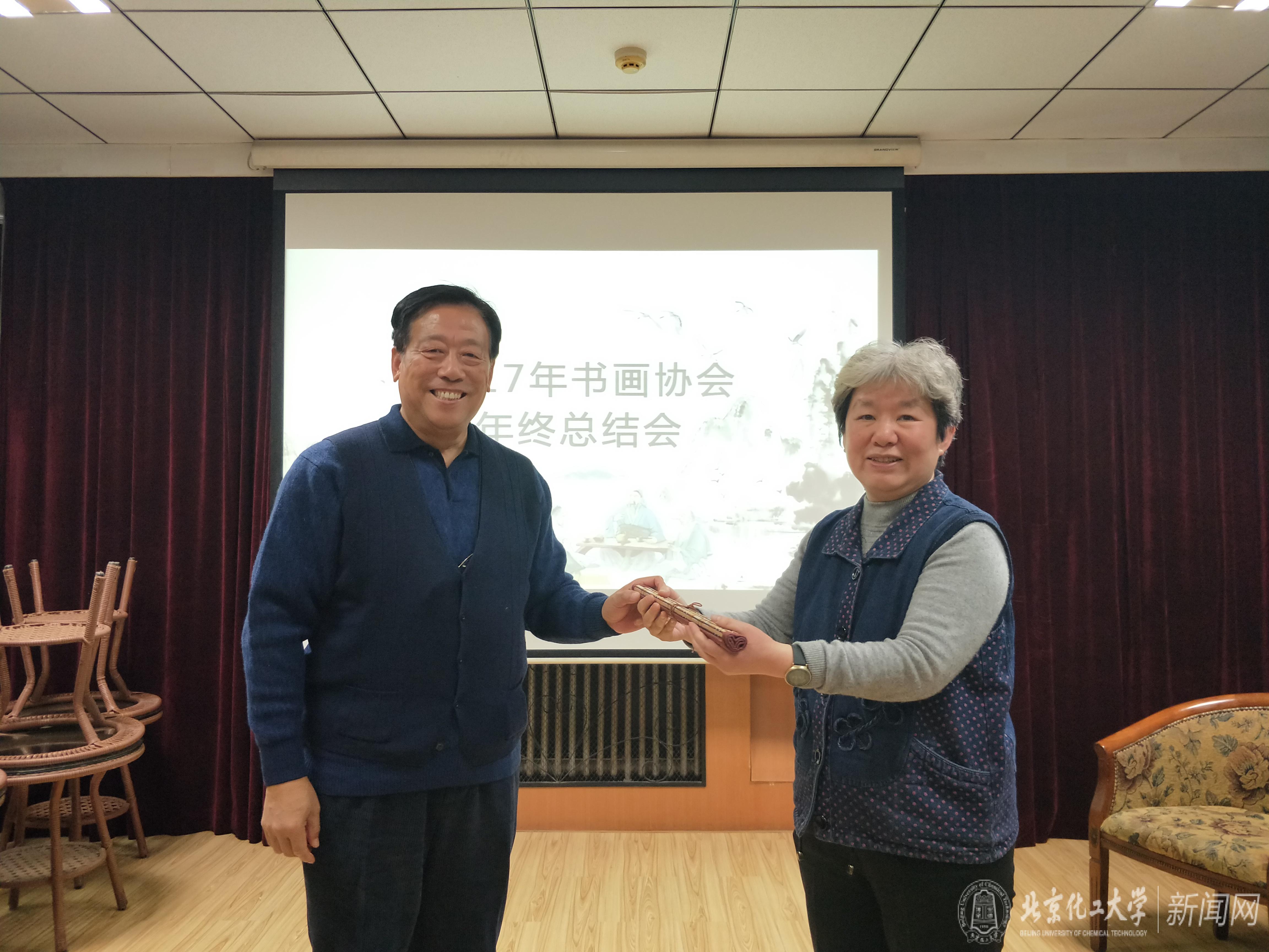 贾梦秋主席对大家致以新年的问候,对书画协会的工作表示肯定,对未来的工作提出了希望。秘书长张宇婷老师对2017年的工作进行了报告,并说明协会经费的使用情况。然后大家推选出本年度的协会积极分子。会员们针对2018年的工作安排进行了讨论,大家建言献策,提出配合我校60周年校庆可举办的一系列活动方案。大家交流气氛热烈,积极踊跃地为了书画协会的蓬勃发展贡献力量。