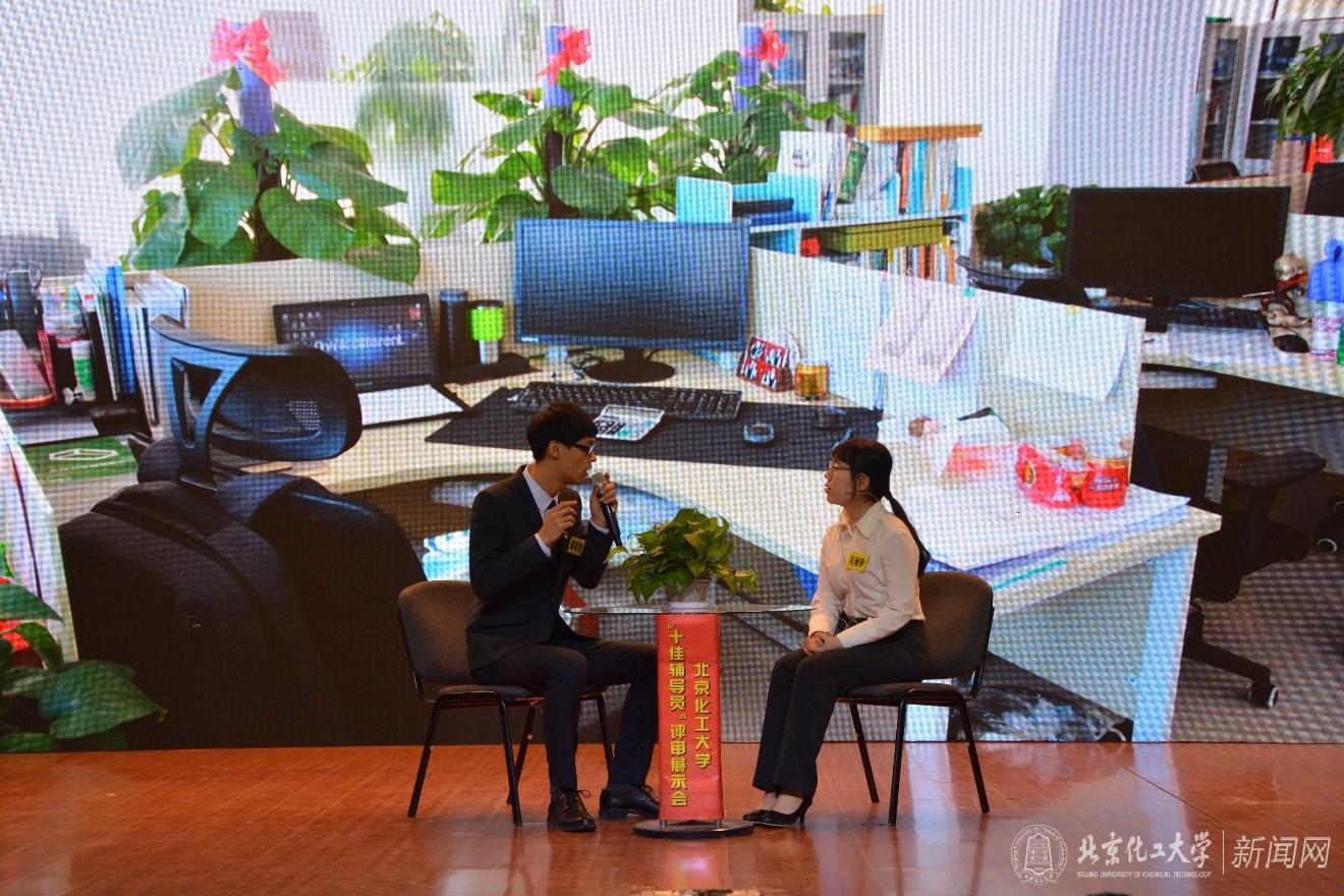 在情景模拟剧展示环节,参评辅导员随机抽取学生学习、生活中的一个场景,根据具体的问题及所提供的背景线索对学生助演进行现场辅导,充分考察辅导员对学生进行深度辅导、处理学生事务以及面对突发事件时的表现。本年度的深度辅导情景模拟剧,紧扣时代主题,融入当下热门元素,贴近辅导实际、贴近学生生活。既有学习十九大精神、“红黄蓝幼儿园”事件、“佛系青年”等社会热点话题,也涉及了学生骨干分歧、宿舍吸烟、出国留学等与学生工作、学习、生活关系密切的问题。参评辅导员们用严密的思路、真挚的情感、幽默的话语破解了一个又一个难题。充分体现了我校辅导员的业务功底、工作技巧、沟通艺术和深度辅导能力,评审会现场掌声与欢笑声不断。