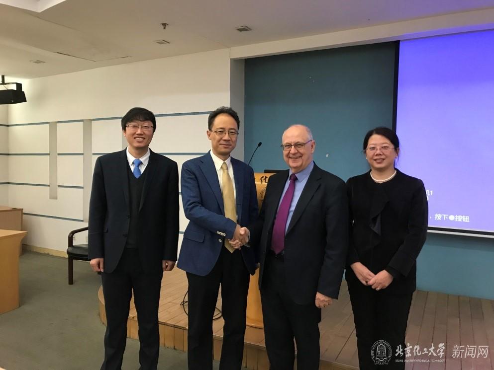 1月9号上午,寇茨教授在北京化工大学逸夫图书馆中心会议室,给全校师生做了“以国际合作推动科学创新式发展”的主题报告,陈建峰副校长、国际交流与合作处毛立新处长,材料科学与工程学院张立群院长参加了报告,对寇茨教授获奖表示热烈的祝贺,并针对未来科技合作,博士生联合培养等事宜进行了深入的交流。