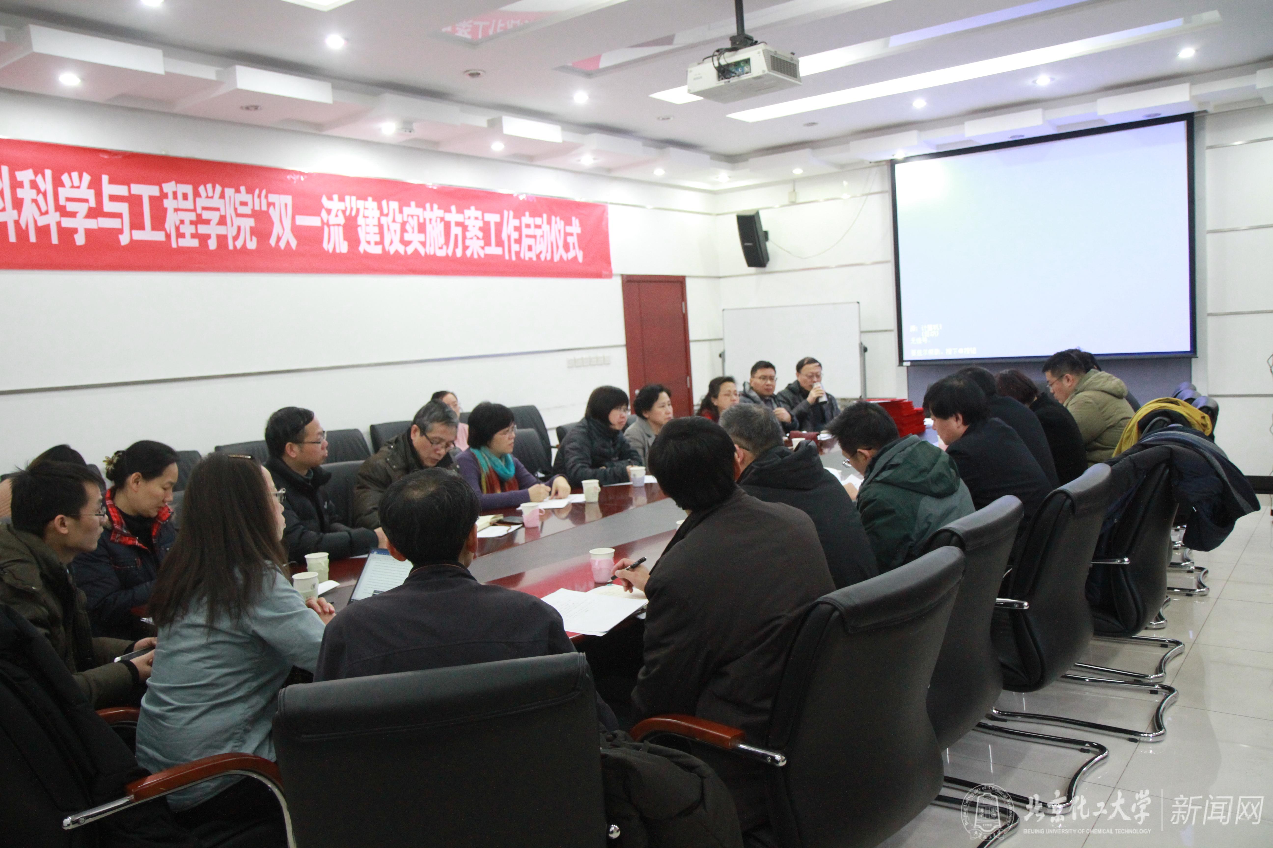 为进一步贯彻学校学科建设工作会议争创一流的精神,以“中国特色、世界一流”为核心,实现“学科交叉融合”、“产学研结合”、“国际化联合”的一流学科建设,提升学院在人才培养、科学研究、师资队伍、社会服务、文化传承创新与国际合作交流等方面的综合实力,凝心聚力把材料科学与工程建设成为世界一流学科,1月12日,学院在有机楼312会议室召开双一流建设方案编写启动会。材料学院全体院领导和学科建设工作组全体成员参加了启动仪式。会议由赵静书记主持。