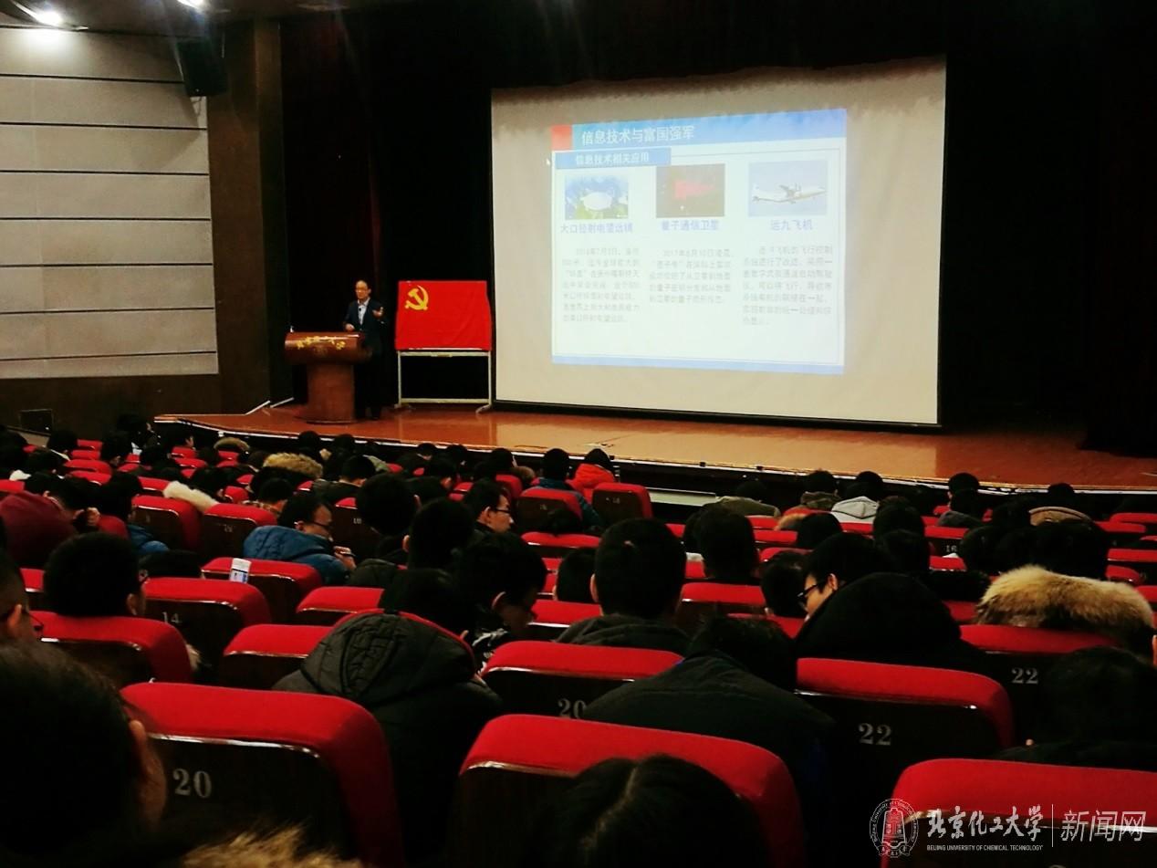 随后,陈建峰副校长通过古代战争形式与现代战争形态之间的对比,阐释了信息技术在富国强军中的重要地位和突出作用。结合****的思想,他重点阐释了国家在深度推进****的进程中,无论是科技研发机构还是相关企业组织,都获得了发展的新机遇、新源泉、新能力和新标准,对国家“强起来”的历史性飞跃有着至关重要的作用。最后,陈建峰副校长通过几个详细的案例,介绍了信息技术与纳米技术相结合的科技成果在富国强军中的具体应用,通过“天眼”、“量子卫星”、“运九飞机”等高精尖的科研成果强化了科技是核心战斗力的思想。