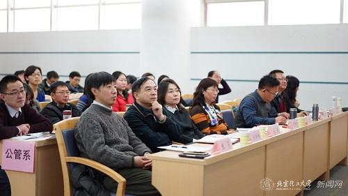 学院的各系部分别汇报了科研与教学情况。金燕华教授介绍MPA学科建设情况认为,要想方设法扩大MPA招生规模并相应地改善办学硬件条件。樊丽君和周艳玲两位教授分别介绍了法学、公共管理一级学科硕士点参加学科评估的情况。两位教授指出,学科建设必须更加注重凝练学科特色、优化师资队伍,必须根据学科评估政策有针对性、有重点地组织学科建设。潘崇堃副教授汇报了英语系的建设与发展情况,在比较国内理工高校英语学科三个发展梯队的基础上,提出研究方向、师资队伍、岗位聘任、资金投入、政策扶持等一系列的建议。张洪兵副教授介绍了大学生英语课程体系的建设与教学改革计划,提出了建立语言诊所的构想。孙革副教授、皮利忠副教授、张志华教授等分别介绍了社会体育系、体育部、高水平运动队的教学与科研情况。新校区建成以后,我校体育教育教学条件得到了有效改善,高水平运动队等为学校争取到很多荣誉。但是,在高速发展过程中,场馆硬件条件和管理体制方面还有待进一步完善。唐帼丽教授介绍了国家大学生素质教育基地在未来一个时期的工作目标和基本思路。唐老师提出,基地应进一步完善通识教育规划,加强文化品牌建设,系统提升教师的教学与科研能力。