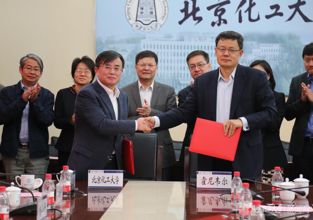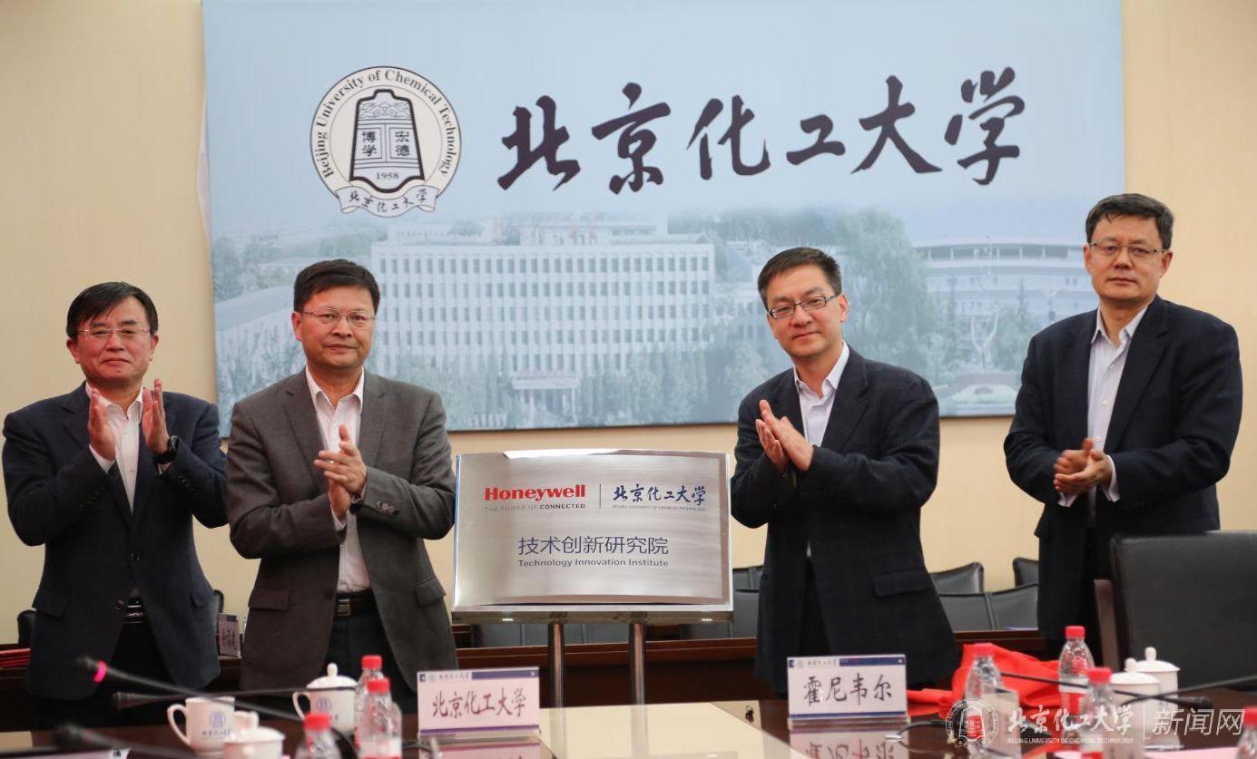 会上,科研院常务副院长杨小平介绍了学校科研工作整体情况,王峰副校长与罗文中副总裁代表双方签署了合作谅解备忘录,谭天伟校长与张宇峰总裁共同为“北京化工大学—霍尼韦尔技术创新研究院”揭牌。随后,双方参会人员进行了充分的交流讨论。