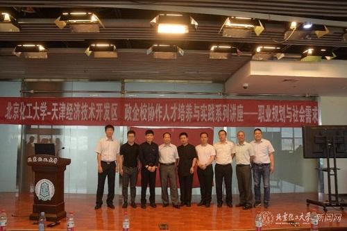 5月19日下午,北京化工大学-天津经济技术开发区政企校协作人才培养实践基地交流暨企业导师聘任仪式在我校举行。副校长任新钢出席。机电学院党委书记张冰、党委副书记王峰,机电学院院长杨卫民、副院长于洪杰,教务处副处长郑秀英,安全系主任张东胜和教师代表陈东梁等,天津经济技术开发区安监局副局长刘军、危化科科长陈伟,雷可德高分子(天津)有限公司总经理田伟、副总经理陈健和安全主管路明(优秀校友),专一(天津)环保科技有限公司总经理田立松,利安隆新材料有限公司副总经理张少伟一行7人参会。
