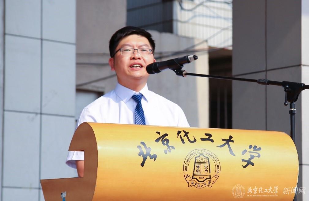 生命科学与技术学院冯越教授致辞,他寄语全体毕业生三点建议,学会坚持,自信处世,尽早做出事业选择,他勉励同学们常怀赤子之心,坚持终身学习。他希望大家能够在不倦的探索与实践中传承化大精神,将北化风采撒播到祖国乃至世界的各个角落。