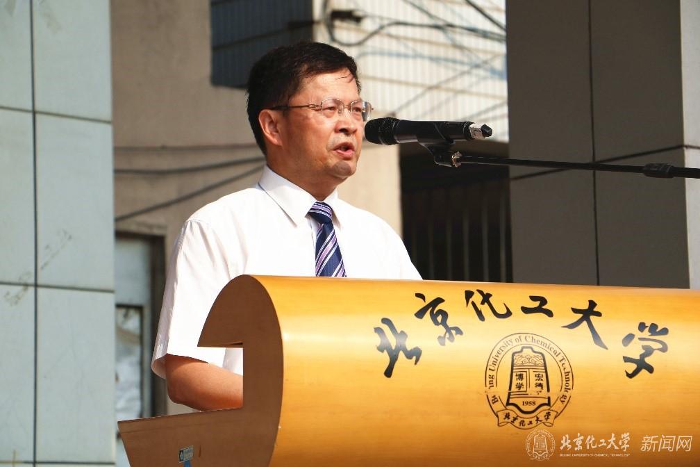 校长、中国工程院院士谭天伟以《胸怀家国 奋斗前行》为题寄语2018届全体毕业生。谭校长首先代表学校向辛勤奋斗多年、获得丰硕成果的毕业生们表示祝贺,他列举了四年间学校实现的跨越式发展和昌平校区的阶段性建设所取得的辉煌成果,生动结合毕业生们四年的点滴故事与回忆,强调新时代的青年学子要有“为天地立心,为生民立命,为往圣继绝学,为万世开太平”的志向和担当,他鼓励大家要持之以恒,砥砺前进,于险情中努力求生,于绝境中枯木逢春。他深情地向大家发出校庆邀请:“甲子校庆时,我在家里等你们回来,作为家长我陪你们一起畅谈仰望星空的理想,一起交流脚踏实地的故事,一起唱响**奋斗的歌曲,一起品尝岁月沉淀的美酒。”赢得了全体毕业生经久不息的掌声。