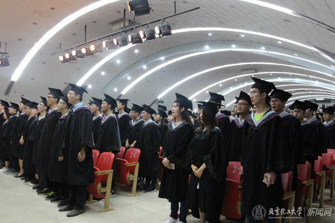 在激扬的旋律中,毕业生身着学士服,神采奕奕地逐一走上典礼台。身着导师服的校、院领导与毕业生们亲切握手,颁发学位证书,为他们拨正流苏,将母校的期望与祝福、大学的精神与价值传承予学子,激励学子们不断追求梦想、超越自我。毕业生们也在微信、微博互道珍重,抒发真情:谁言雁去归无心,感恩心泪沾满襟;愿你三冬暖,愿你春不寒,愿你出走半生,归来仍是少年;祝毕业生前程平顺,祝母校越来越好。仪式最后,毕业生共唱校歌《母校之光》,伴随着“我们骄傲,母校之光,自强不息,激流勇进!我们自豪,春风化雨,栋梁柱石,桃李缤纷!”的铿锵歌词,学位授予仪式气氛推向**,地下礼堂内欢呼声久久不息。