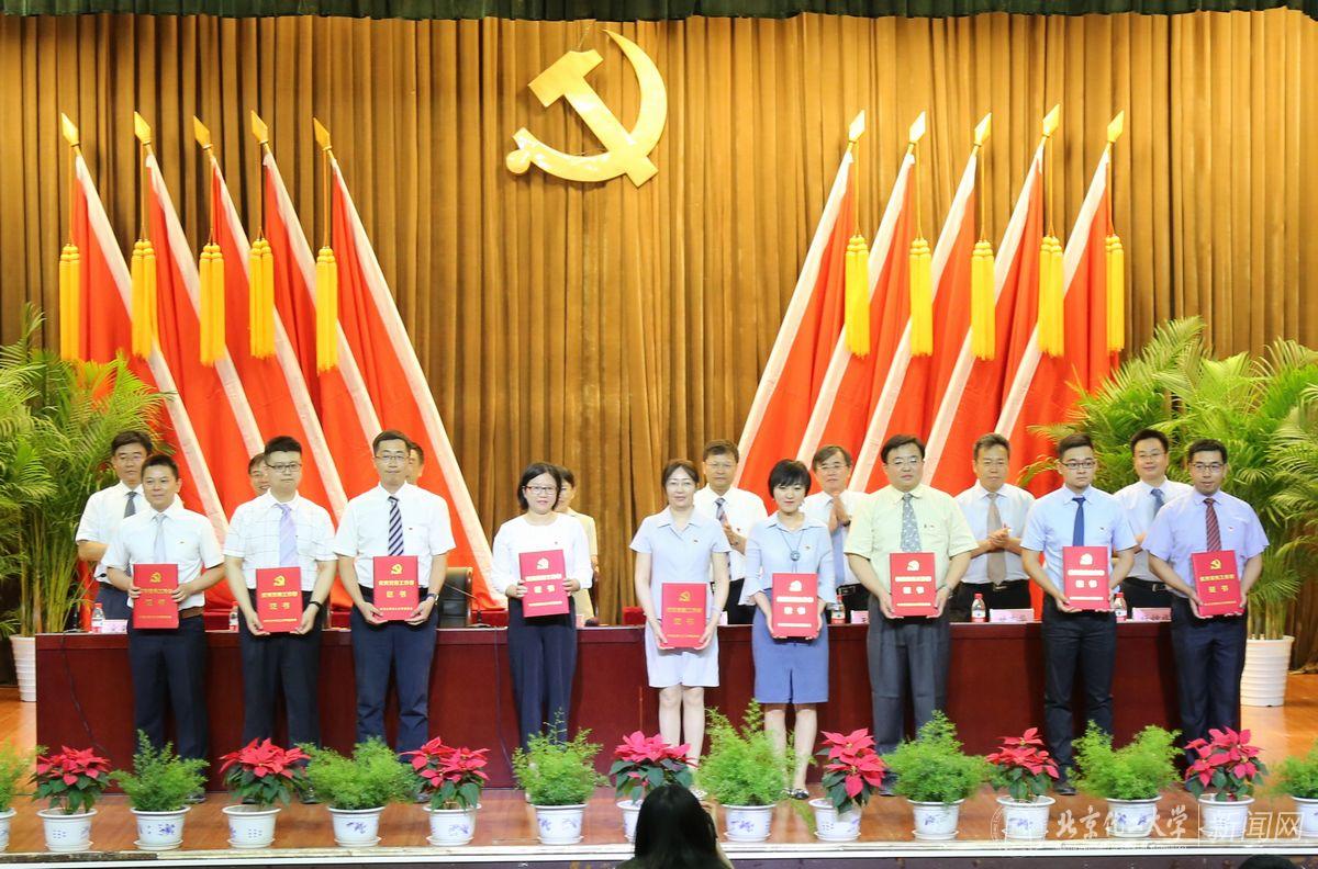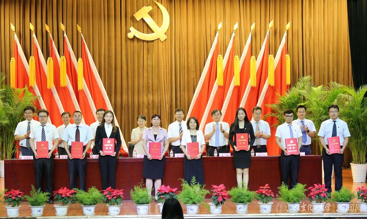 副校长任新钢同志宣读《中共北京化工大学委员会关于表彰优秀共产党员、优秀党务工作者的决定》,授予于文博等20名同志“优秀共产党员”称号,授予刘传宇等10名同志“优秀党务工作者”称号。学校领导向受到表彰的优秀个人颁发荣誉证书。