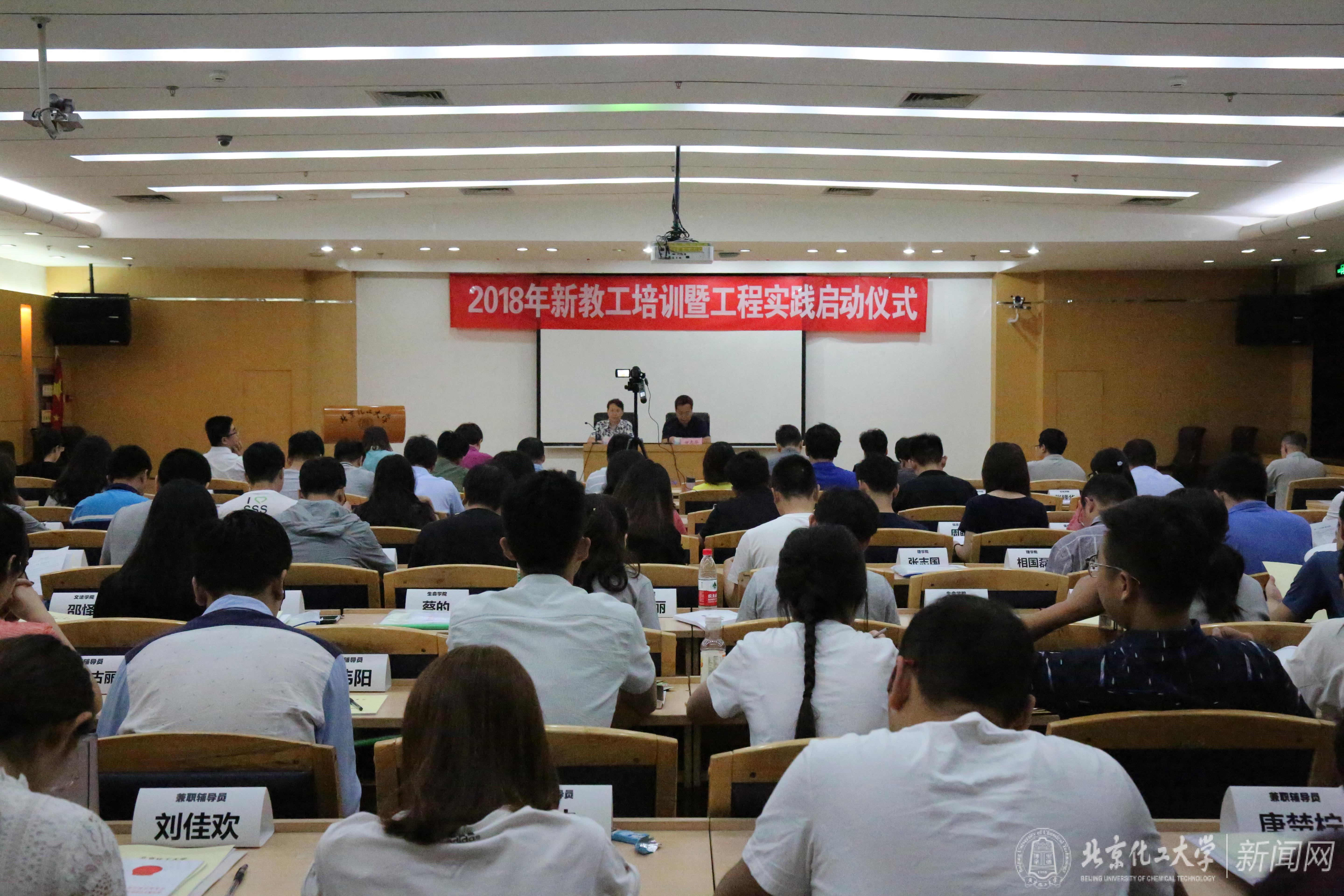 随后,校领导与新教工合影,启动仪式结束,新教工培训正式开始。2018年学校从工作实际和培训效果出发,经过精心设计,将新教工培训分为两个阶段,第一阶段为小学期集中培训,由学校相关业务部门开展业务讲座,包括师德教育、校情校史、素质拓展、学校的教学、科研、国际交流等相关工作以及管理制度与规章制度的介绍,集中培训的主要目的是,帮助新教工尽快了解学校,感受北京化工大学文化,熟悉学校的教学、科研以及管理工作;第二阶段为秋季学期专项培训阶段,主要包括新教师教学研习营、新进管理人员研修课程、社会实践活动、新校区参观考察、系列专题报告、交流分享等环节,以帮助新教工进一步提高新教工思想素质与业务素质、提高人才培养的能力和水平、提高管理工作的水平与技巧。