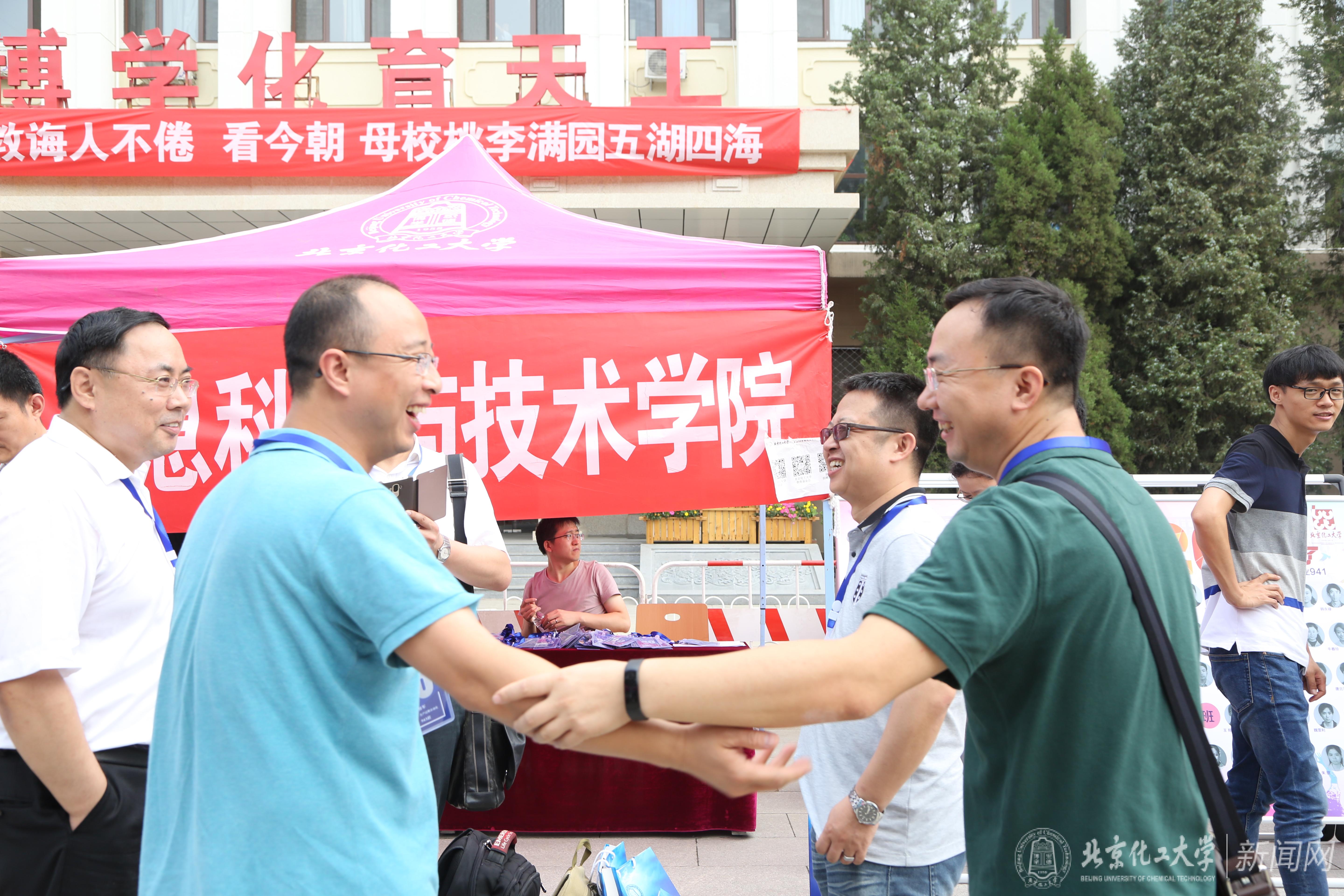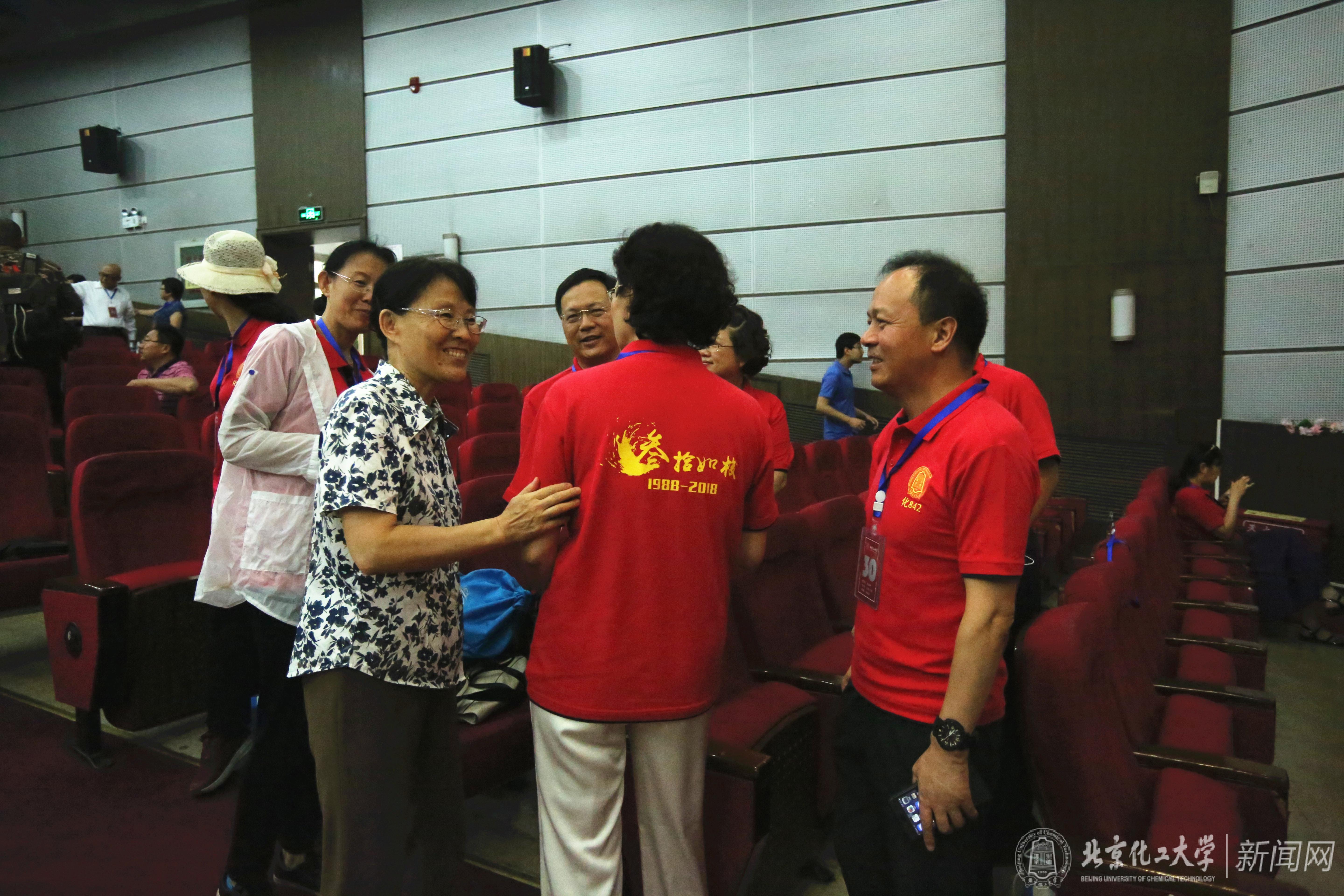 (校记者团 刘笑宇 张改改)最近两个星期的的天总阴阴的,夜间急雨打湿的地面还来不及干透,偶尔又飘下来一阵细细密密的水珠。气象台早就发布了北京市的暴雨预警,提醒市民们减少出行。饶是如此,7月7日和14日的上午,主教楼下一顶顶粉色的帐篷前还是围满了人,这些人胸前挂着刚刚从志愿者手里接过的印有自己名字和专业的胸卡,手里挎着“北京化工大学”的标志性蓝袋子,在人群中寻找着二十年甚至是三十年未曾见面的老同学,和他们用力地拥抱、大声谈笑。这两天是北京化工大学84、94级校友返校的日子。