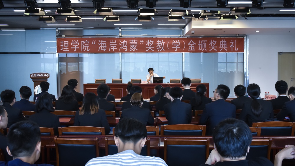 7月12日下午,理学院“海岸鸿蒙”奖教奖学金颁奖仪式在昌平校区图书馆五层学术报告厅举行。北京海岸鸿蒙标准物质技术有限责任公司总经理李力,技术总监窦晓亮,市场部总监李翰超,新媒体推广总监刘威达作为嘉宾出席。理学院院长聂俊、学生工作办公室副主任丛迪、标准物质研究所教授李增和及理学院教师代表、学生代表参加了此次颁奖仪式,仪式由理学院党委副书记崔玉主持。