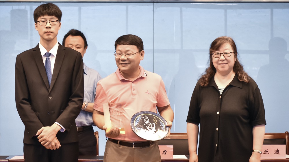 颁奖仪式上,学生工作办公室副主任丛迪老师宣读理学院“海岸鸿蒙”获奖教师和学生名单,与会领导与嘉宾为获奖师生颁发证书。张丽丹老师与马明骏同学向公司赠送了象征感恩的水晶杯和炭雕礼物。马明骏代表所有获奖学生发表获奖感言,表达了对公司的感谢。随后,李力经理介绍了“北京化工大学—海岸鸿蒙”奖教奖学金的基本情况,并希望北化学子在追求卓越的道路上能够披荆斩棘,砥砺前行,为中国计量事业贡献自己的力量。最后,理学院院长聂俊做总结发言,他向一直以来关心、支持理学院学生培养的设奖企业和有识之士表示了衷心的感谢,向获奖同学表示热烈的祝贺,希望获奖师生能够饮水思源,努力奋斗,回馈社会。