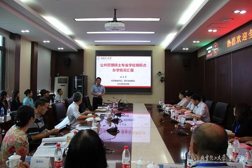 上午,专家组首先参加了学校研究生院组织的现场汇报会。会上,谭天伟校长代表学校对专家组的到来表示欢迎和感谢。谭校长介绍学校学科建设整体情况时指出,学校高度重视MPA学位点的建设和发展,希望专家们找出不足并提供指导。校党委副书记甘志华代表学校汇报了MPA学位点的办学情况,重点介绍了MPA学位点建设提升计划。