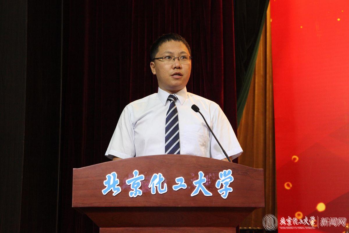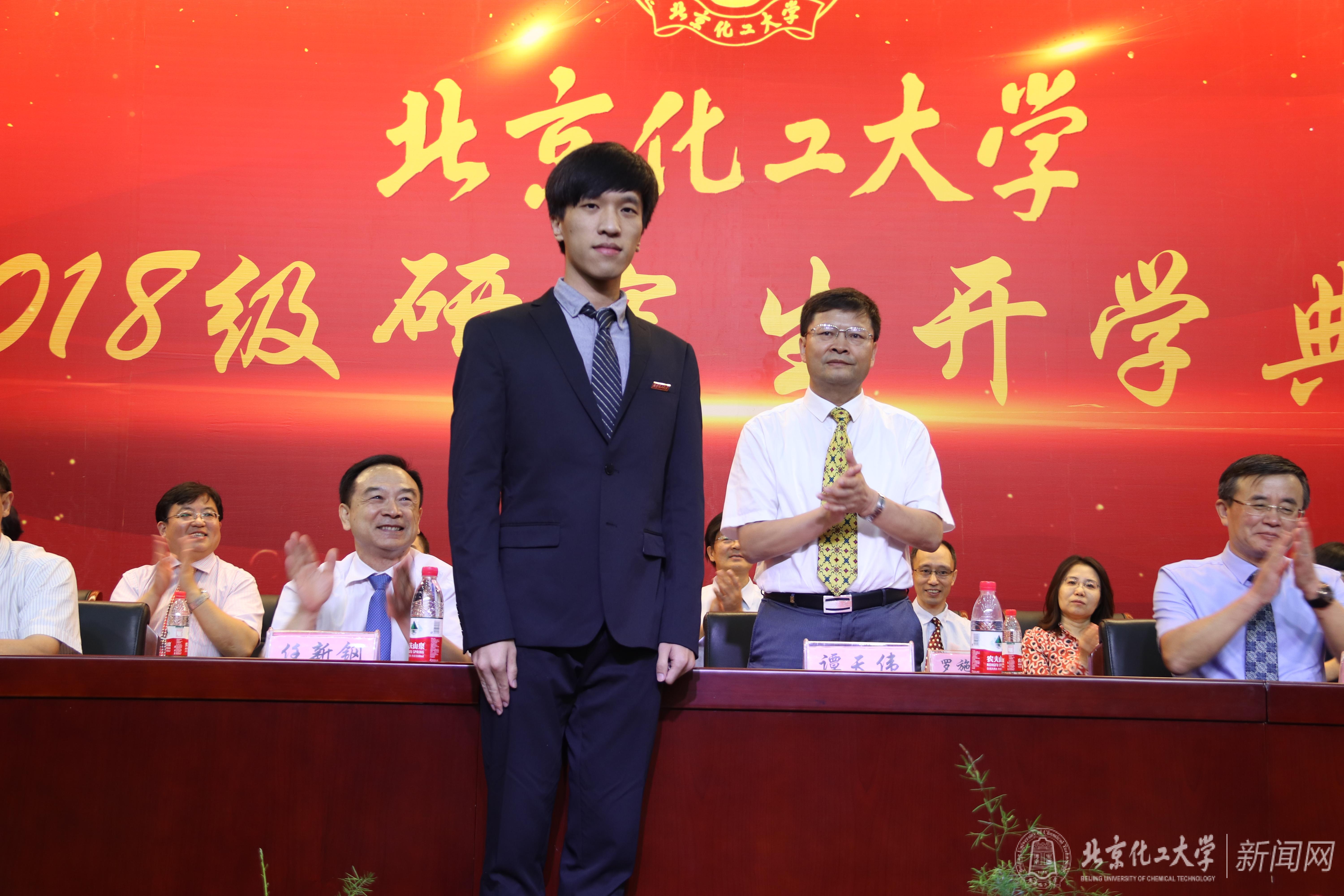 校研究生会主席、化学工程学院博士生武威同学代表高年级研究生发言。他说,北化是一个昂扬奋进、收获充实的校园,也是一个大牛云集、设备精尖的校园,更是一个钟灵毓秀、创造梦想的校园。他向2018级全体研究生新生发出倡议,倡议广大研究生肩负历史使命,续写化大华章,并祝愿大家在北化校园度过一段美好的研究生时光。