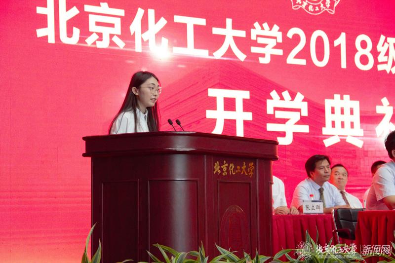 校学生会主席尚祎婕作为学生代表发言,她结合自己的大学经历鼓励新生勇于尝试、不畏失败,将学习作为大学生活的第一要义,努力为学校添增新的荣光。