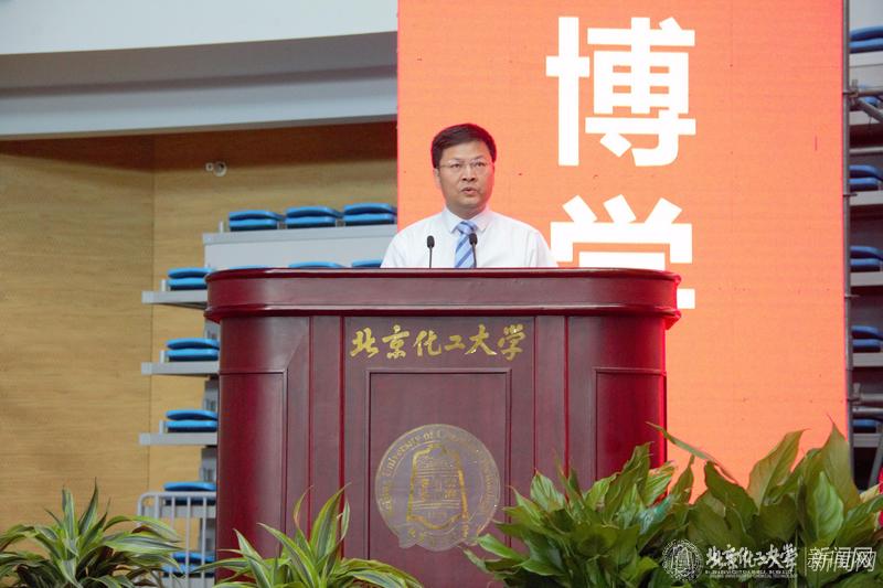 谭天伟校长做主题为“锤炼自我,成就未来”的致辞。他向2018级全体新生表示热烈欢迎,向新生家长和老师们致以诚挚的问候和衷心感谢。谭天伟校长以我校即将迎来的甲子校庆为契机,向广大新生介绍了昌平校区科技感十足的“云端一体化”智慧教学系统,与同学生活息息相关的“新风系统”,为便捷校园生活建设的“有线、无线网络”全方面信息保障。他围绕 “立德修身、诚信为本”,敢于质疑、勇于创新”,“坚定志向、持之以恒”分享了自己对“锤炼自我,成就未来”的深刻见解,希望全体新生能够在大学期间选择好自己的人生方向,坚定志向、不断探索,勤于思考、持之以恒,用实际行动续写学校的辉煌。