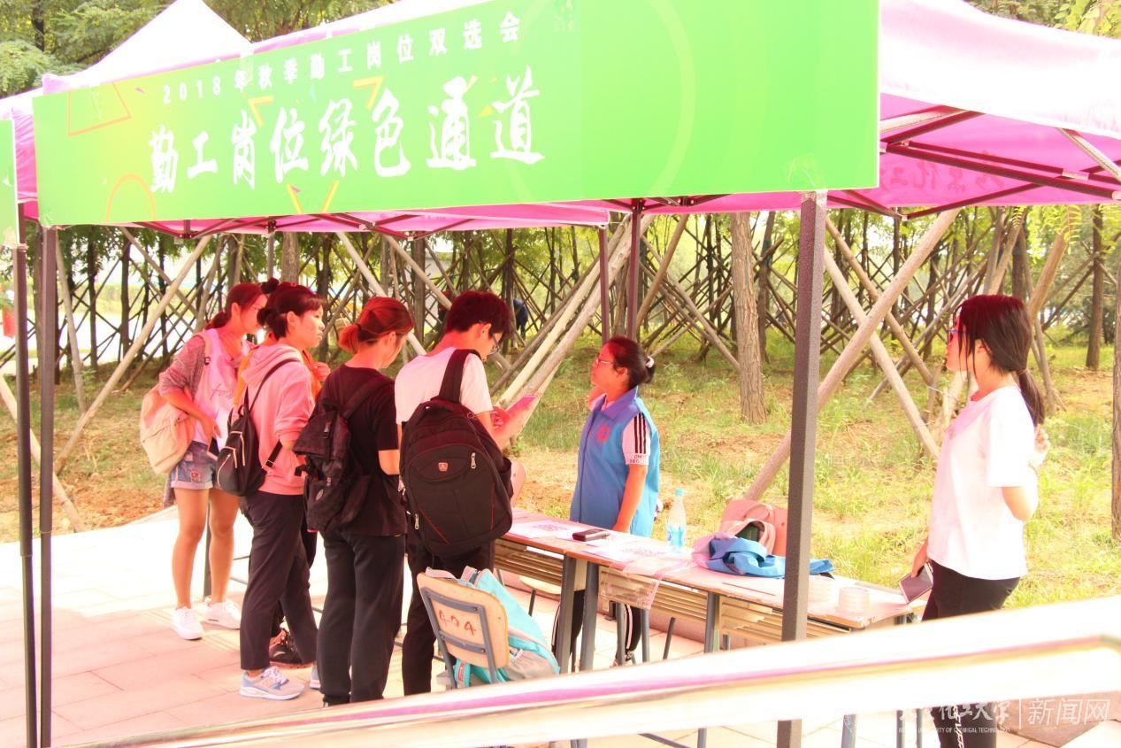 学生资助办公室在此次勤工助学双选会中,进一步明确岗位类别和岗位职责,提高技术类、智力型岗位占比,制订出满足不同校区、不同部门、不同年级学生特点和需求的勤工岗位招聘方案,提升了勤工助学岗位工作的智力内涵和育人功效。同时,这次双选会采用多种人性化招聘方式,开通“勤工助学岗位申请绿色通道”,为因故不能到场的学生单独安排面试时间;增设招聘窗口,增加面试教师,保障应聘人数较多部门的面试成效;为筹备校庆活动的相关部门延长岗位设置和人员录用时间等。