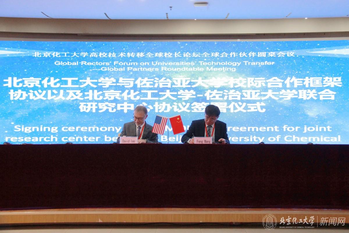 佐治亚大学是世界知名大学,在过去双方交流与合作的基础上,双方成立联合研究中心,将进一步推动两校开展教育与科技的深度合作。北京化工大学副校长王峰与美国佐治亚大学副校长David Lee上台签署了合作协议。