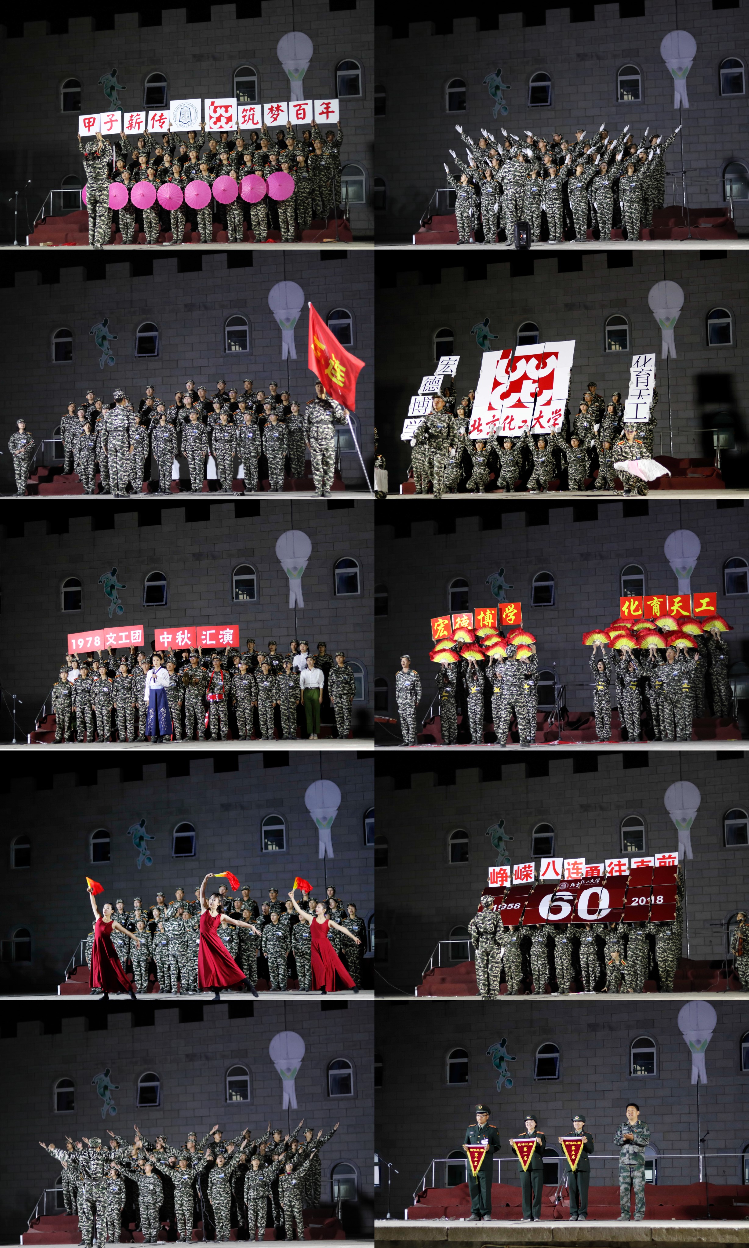 合唱比赛于9月24日晚举行,参赛曲目分为必选曲目和自选曲目两首。其中必选曲目为校歌《母校之光》,反映了团结奉献,艰苦奋斗,务实力行,博学创新的北化精神;自选曲目由各连自行选定。各连队充分发挥才智创新思路,以乐器、舞蹈、曲艺、武术、拼字、横幅、队形变换等多种形式进行表演,歌声热情高亢,表达了对建校60周年的祝福,讴歌了党的丰功伟绩、国家的繁荣富强。